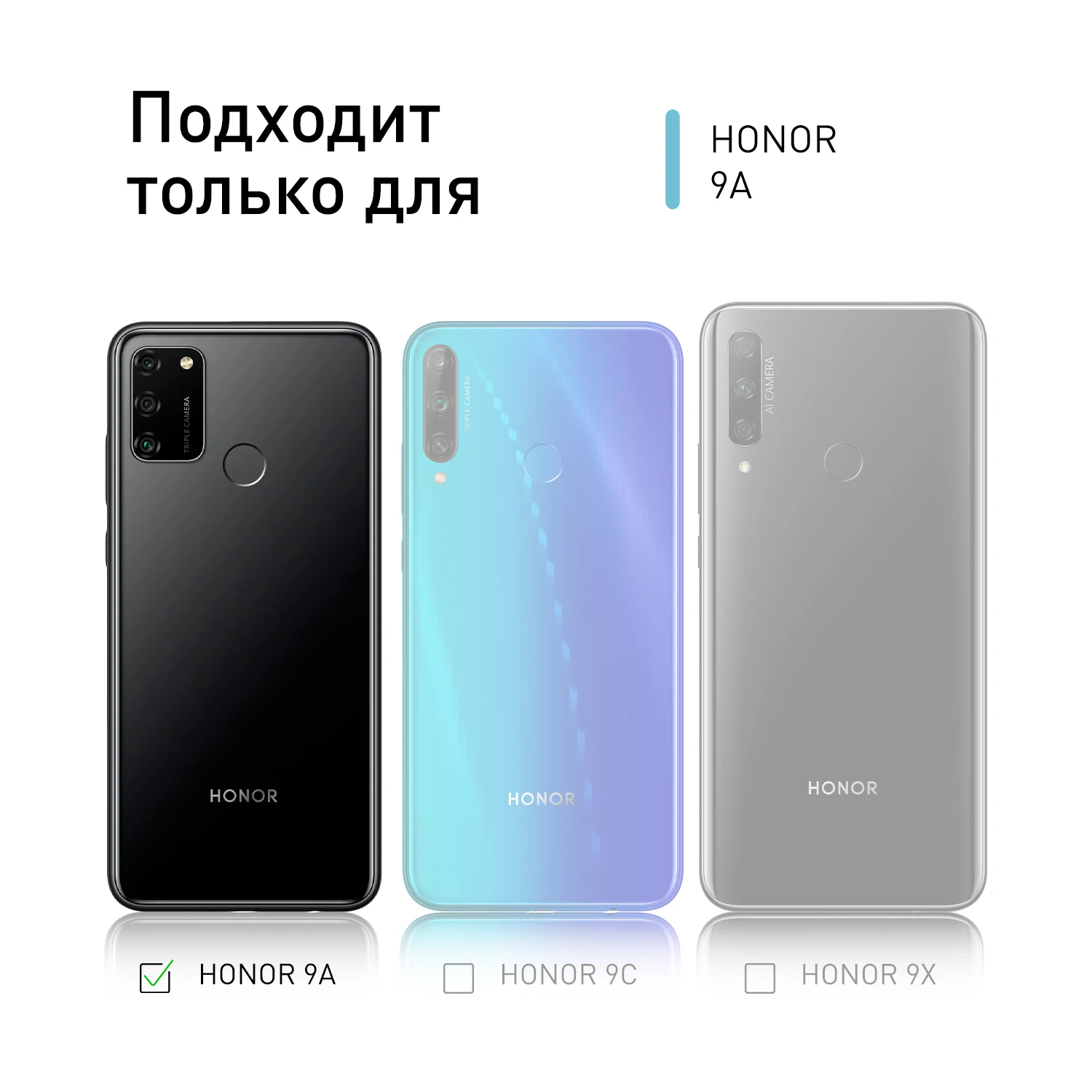 Противоударный чехол ROSCO для Huawei Honor 9A силиконовый с усиленными углами и бортиком-защитой вокруг модуля камер прозрачный