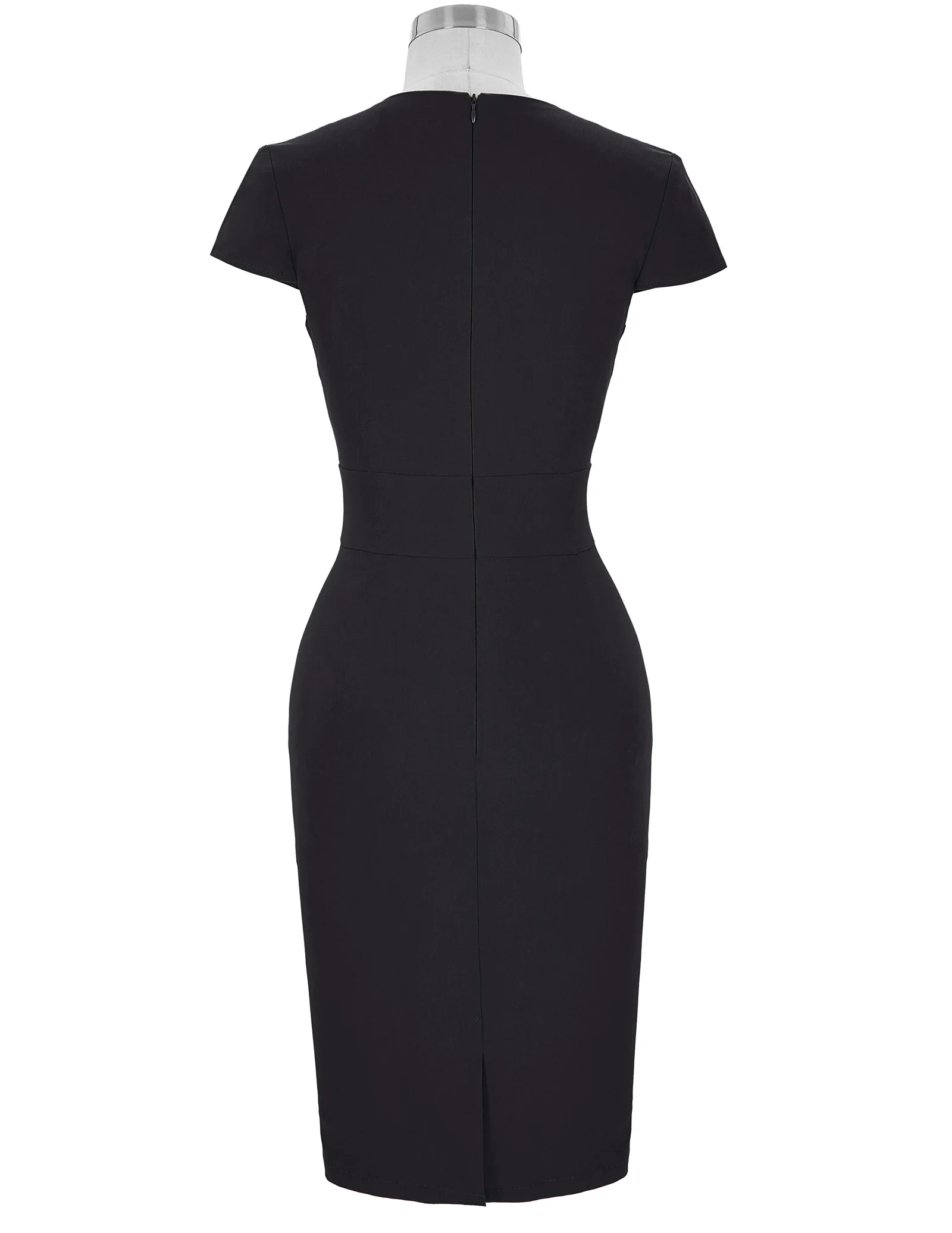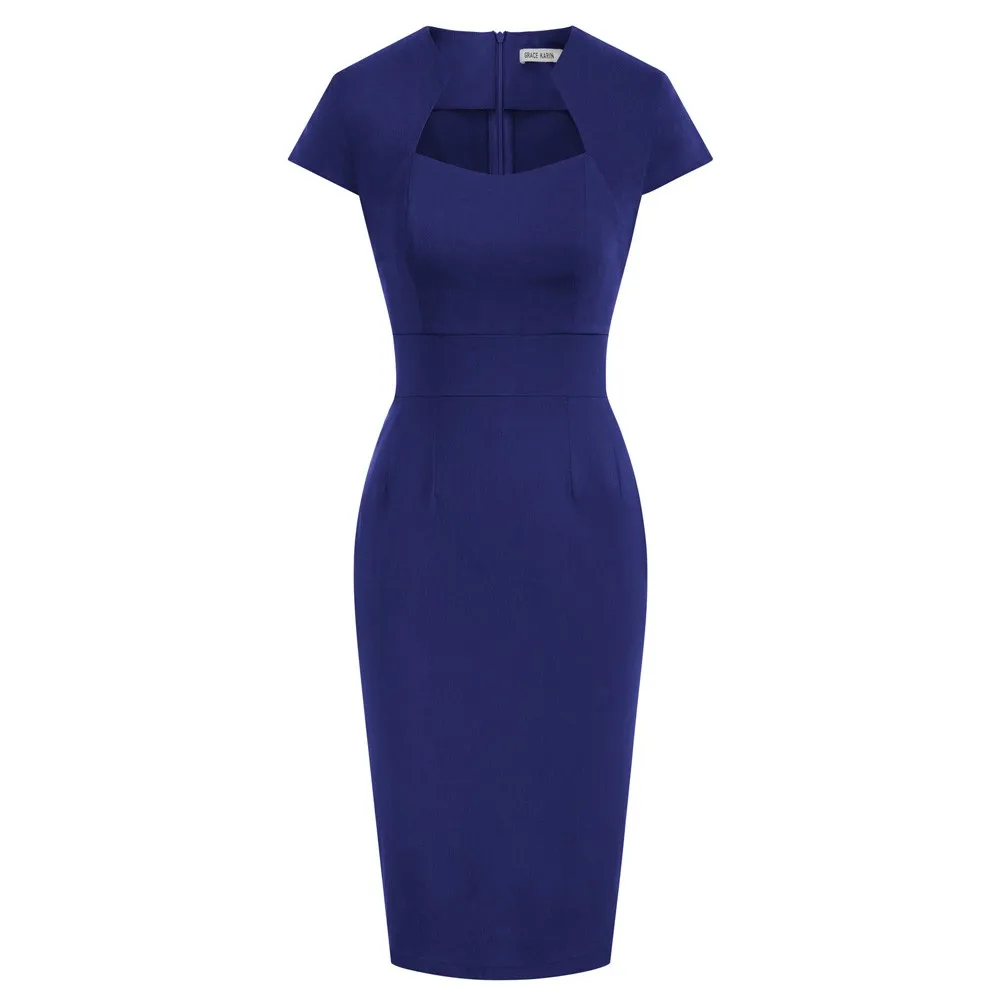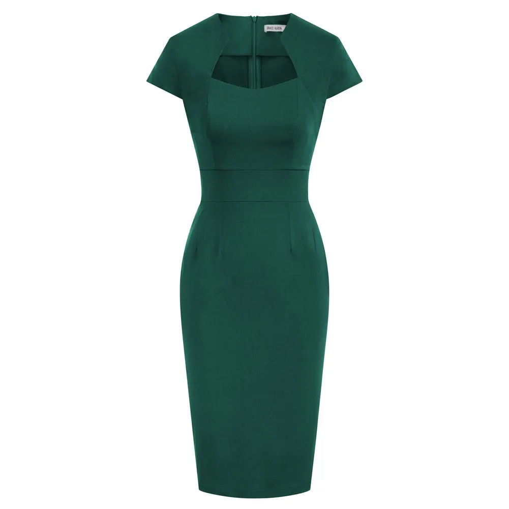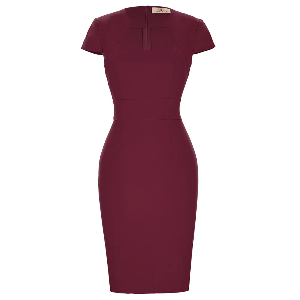 Женское офисное винтажное облегающее платье-карандаш Gk на молнии с рукавами-крылышками и бедрами