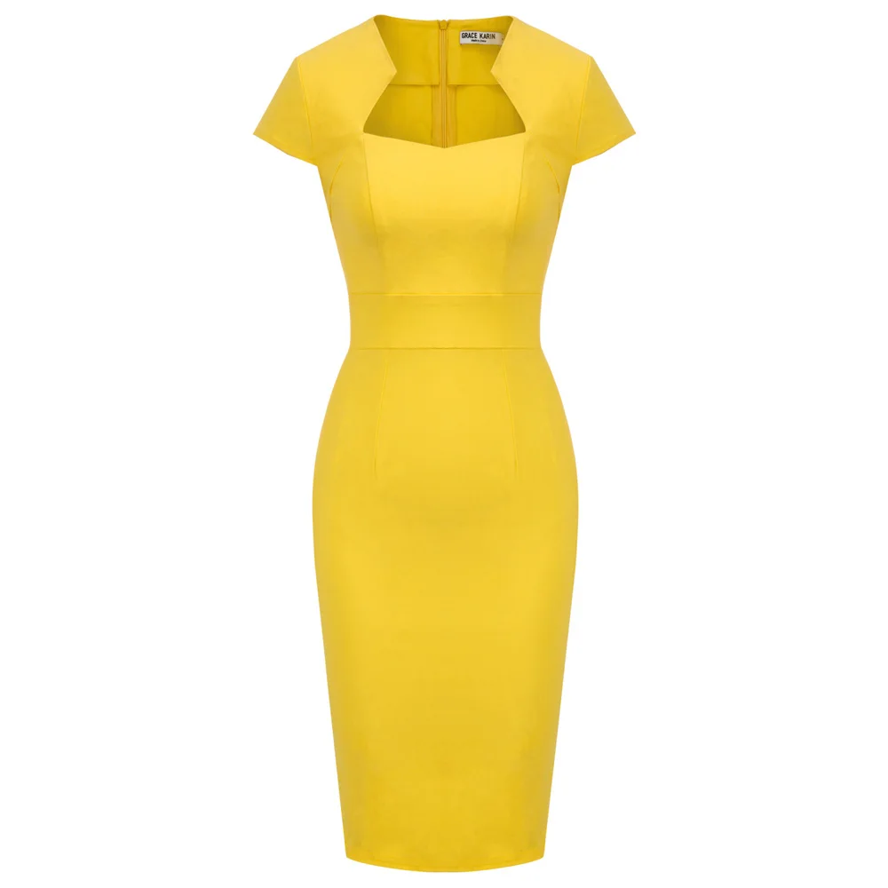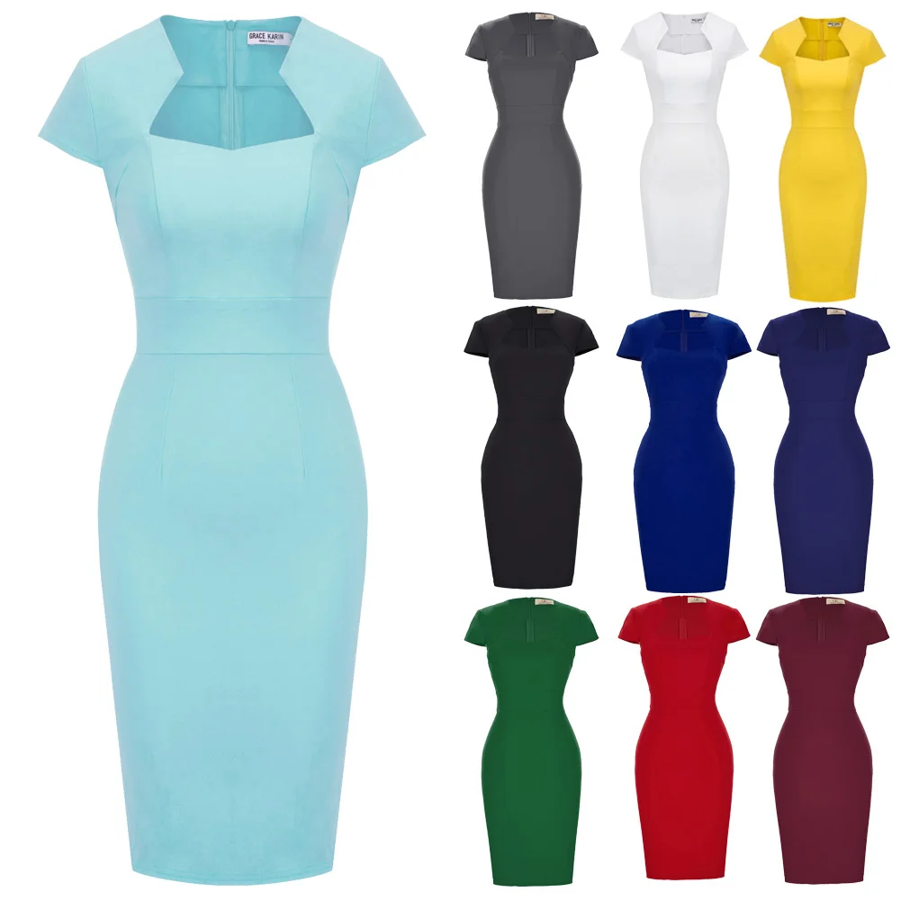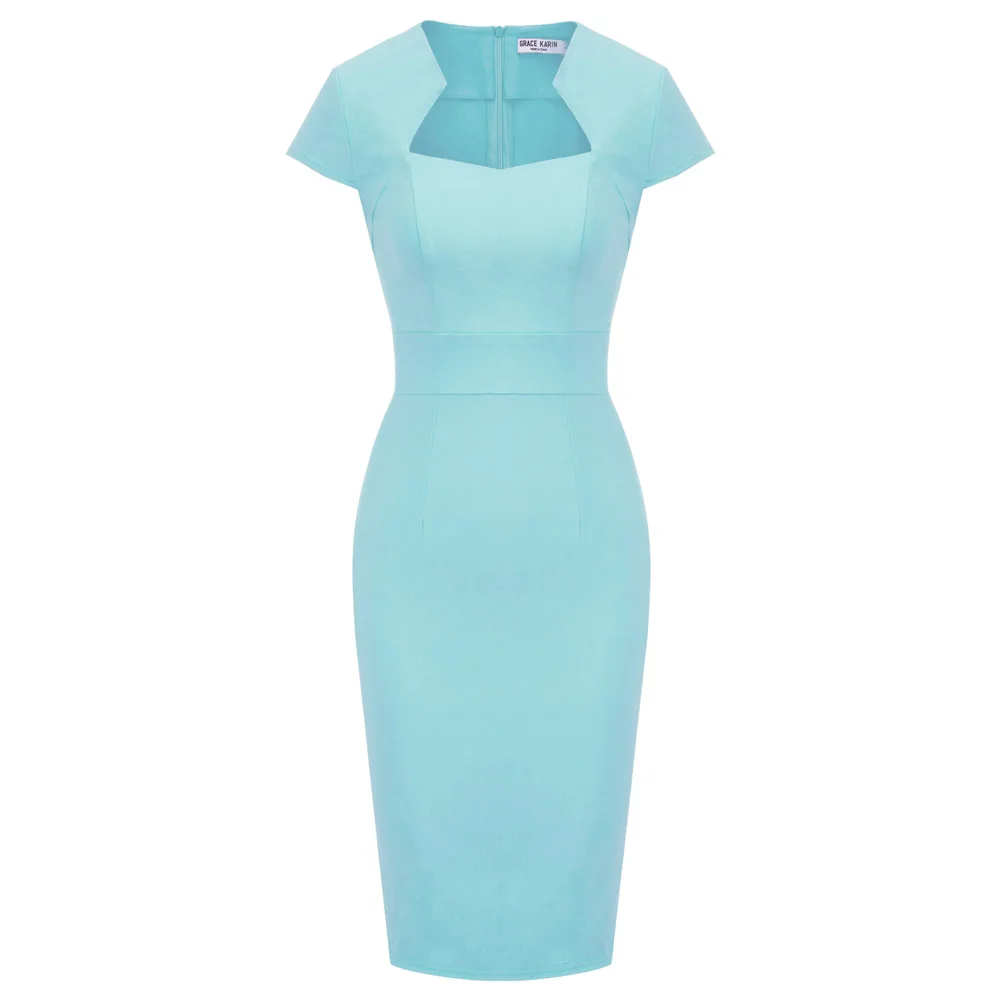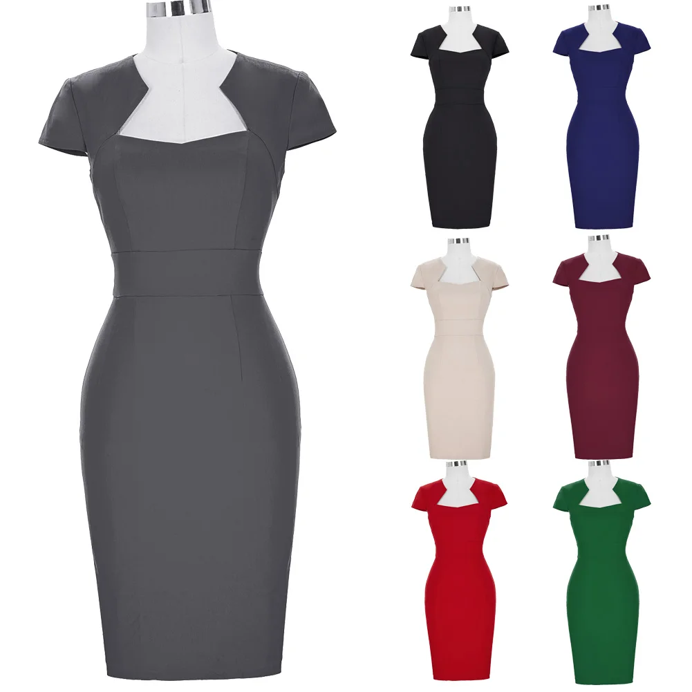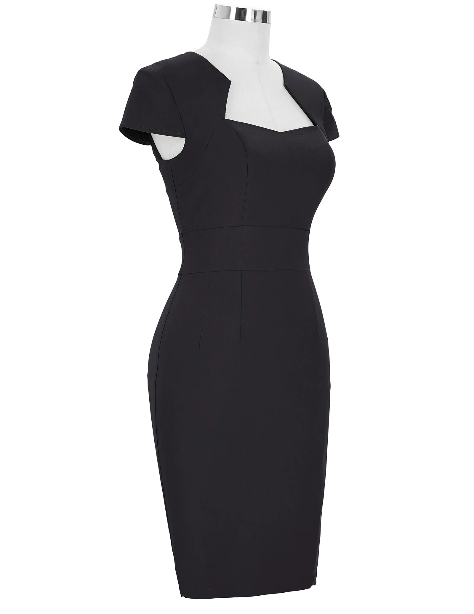 Женское офисное винтажное облегающее платье-карандаш Gk на молнии с рукавами-крылышками и бедрами