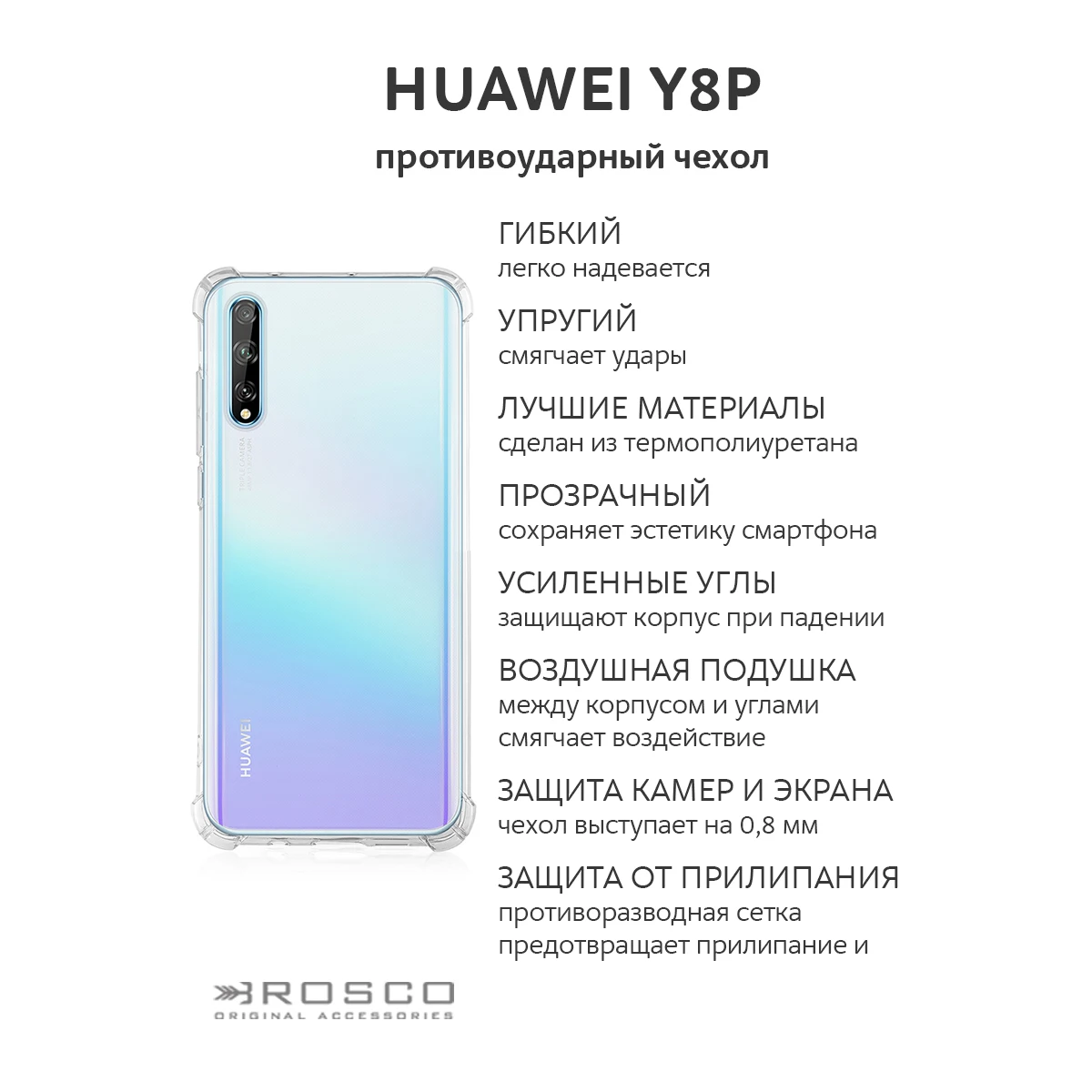Противоударный чехол ROSCO для Huawei Y8P и Honor 30i силиконовый с усиленными углами и бортиком-защитой вокруг модуля камер