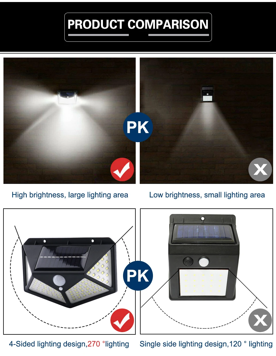 Уличный настсветильник светильник на солнечной батарее, 4 режима, 222 светодиодов