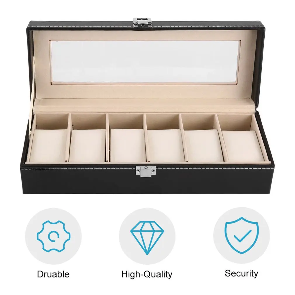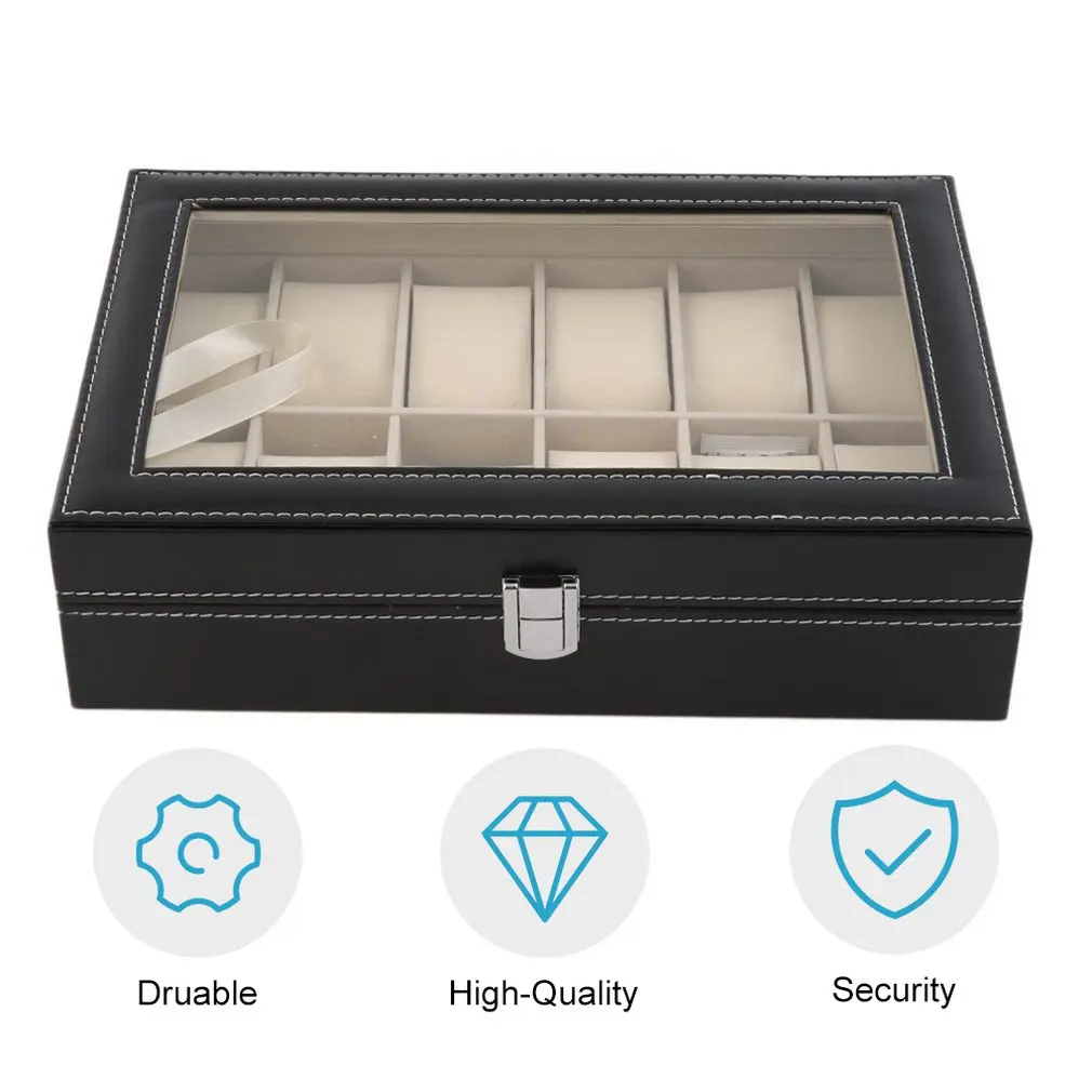 Особенности:Чехол для часов из искусственной кожи с изысканным дизайном.12 сетчатых слотов, достаточно места для отображения ваших часов и ювелирных изделий.С одной застежкой, чтобы чехол на дисплее был заблокирован.Подкладка из мягкой искусственной замши обеспечивает лучшую защиту ваших часов и ювелирных изделий.Разработан с прозрачной верхней крышкой для удобного просмотра и защиты от пыли и грязи одновременно.