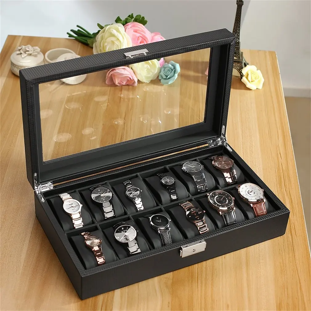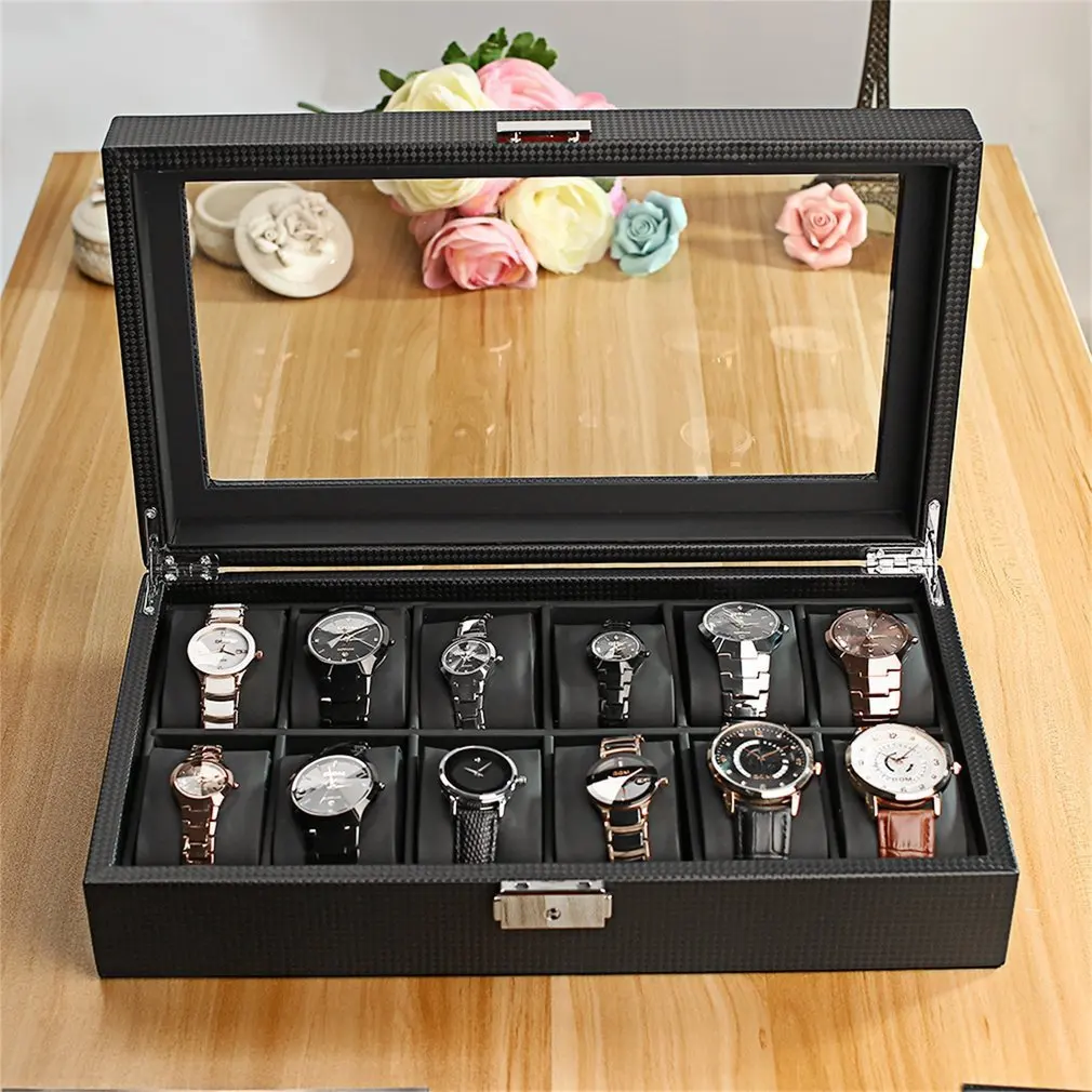 261012 лезвия могут быть использованы для кожиРоскошный чехол из углеродного волокна и коробка для часов, коробка для хранения ювелирных изделий Органайзер кольца браслет Дисплей держатель чехол