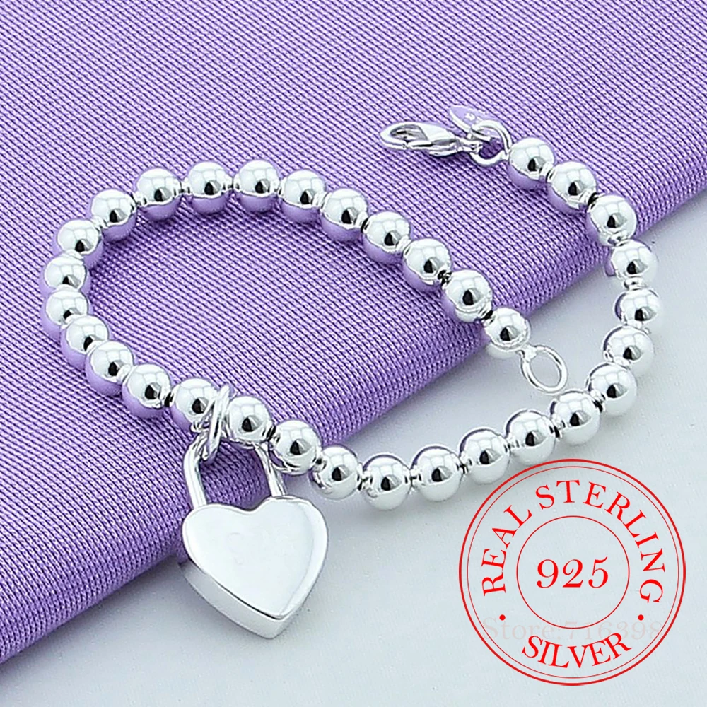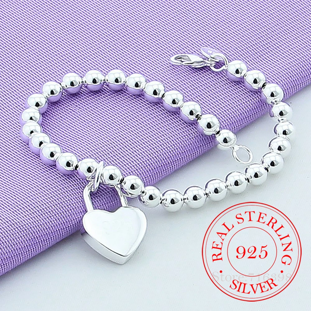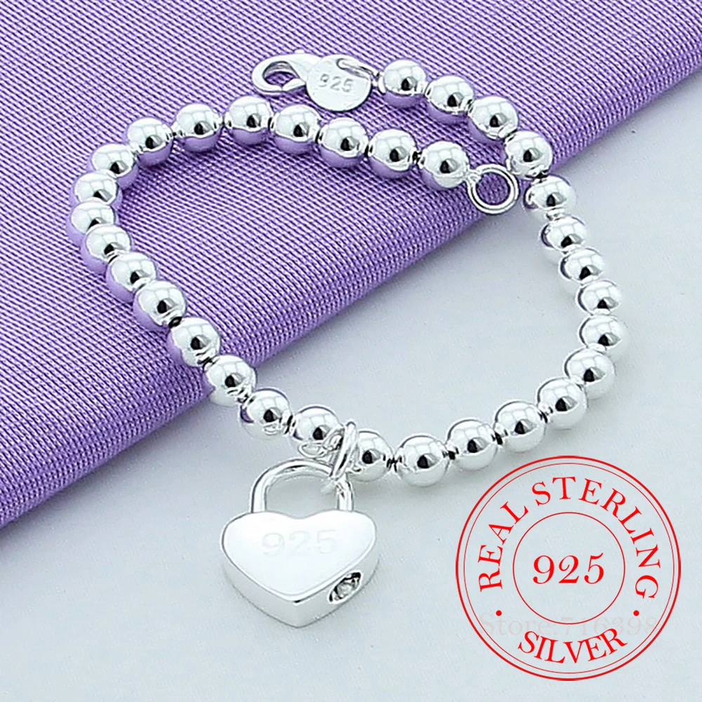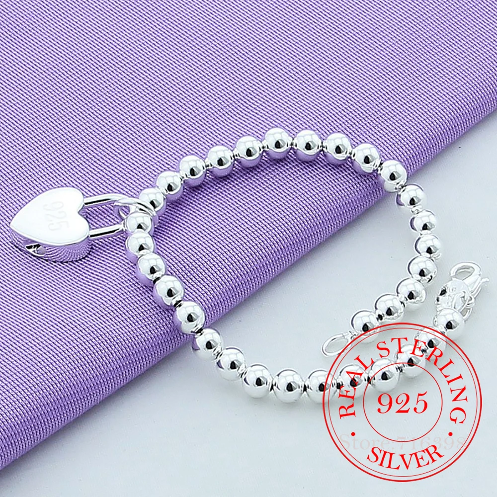 Женская цепочка из стерлингового серебра 925 пробы с сердцем 6 мм, браслеты-цепочки, ювелирные изделия, высокое качество, браслеты для влюбленных, подарок на Рождество