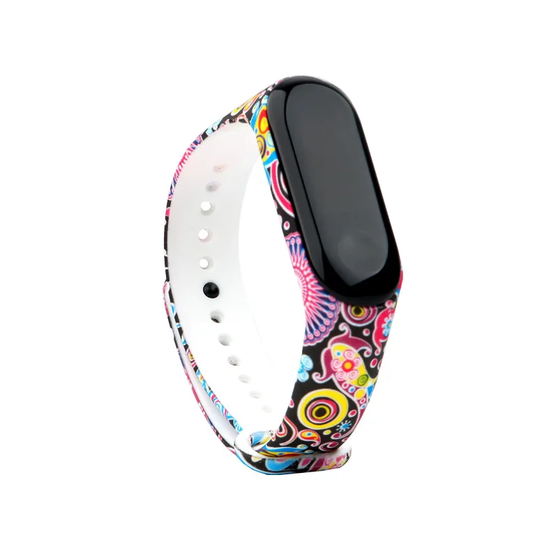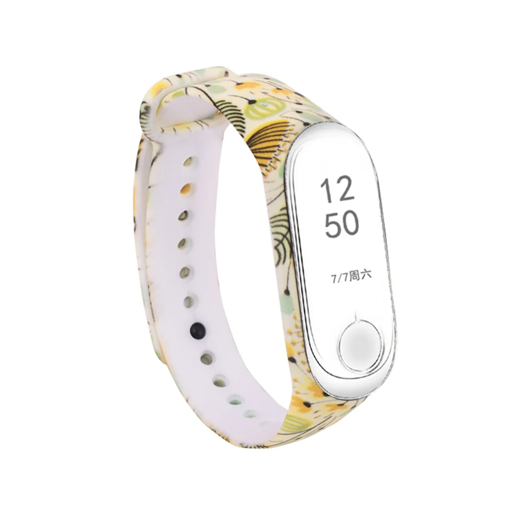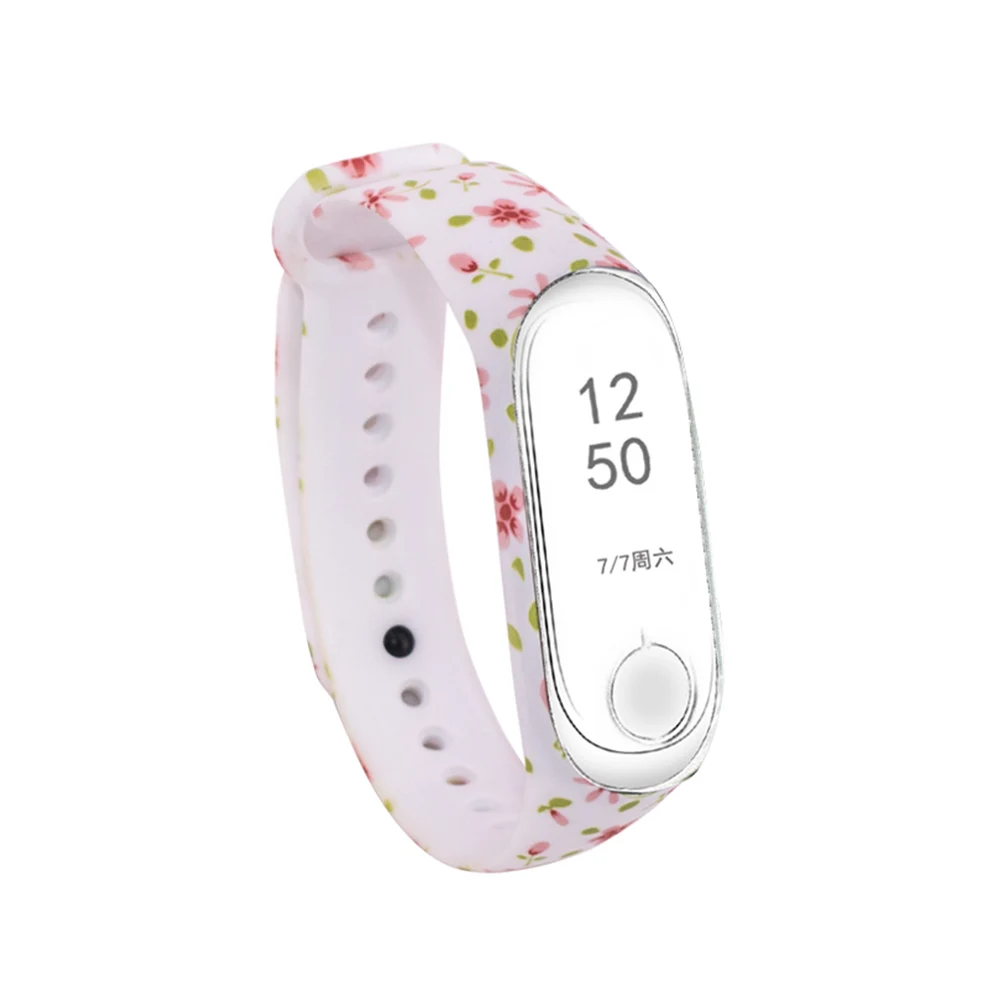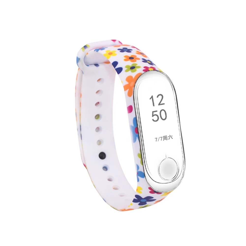 Цветной силиконовый ремешок на запястье mi band 3 4 с цветочным при...
