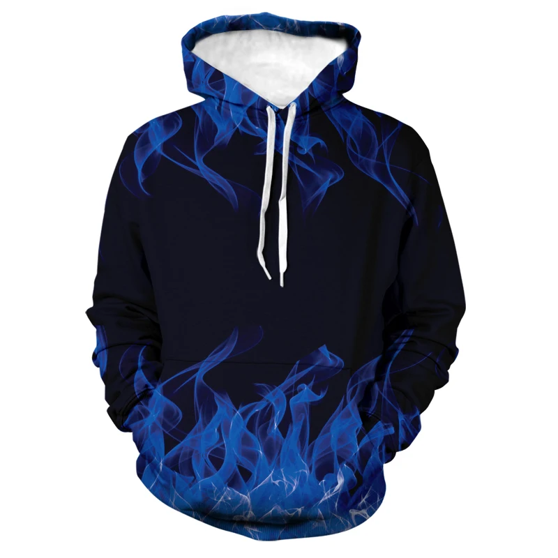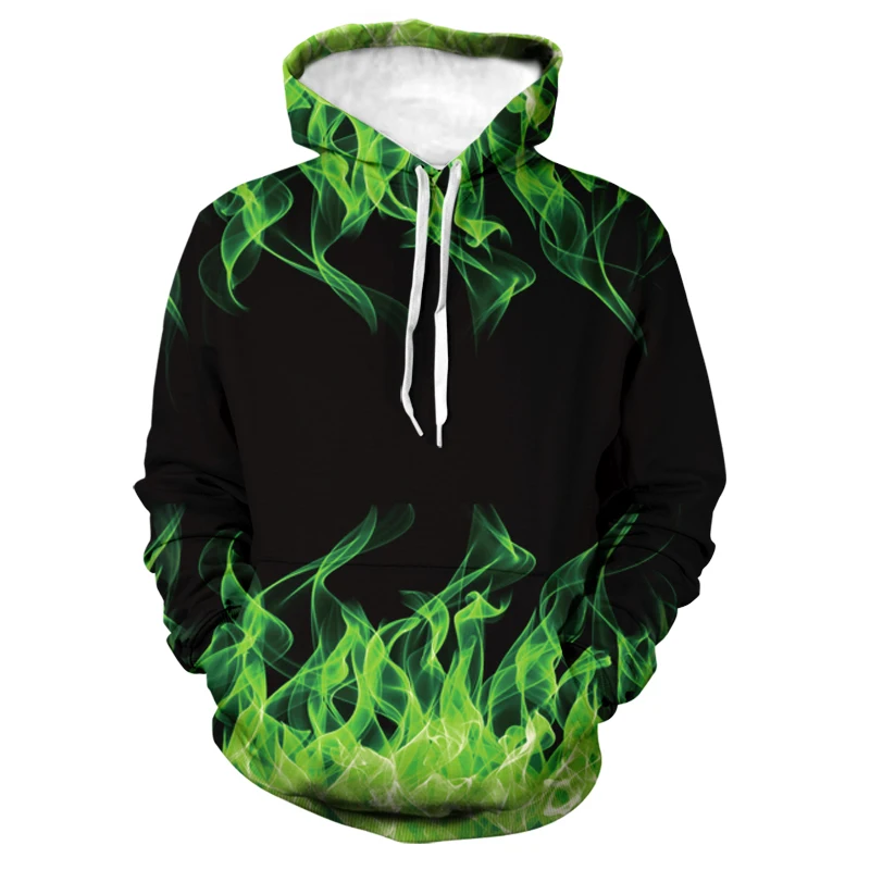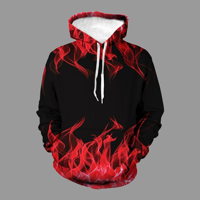 Толстовка мужская с принтом пламени, Модный свитшот с капюшоном, свободная уличная одежда, кофта с длинным рукавом, весна-осень