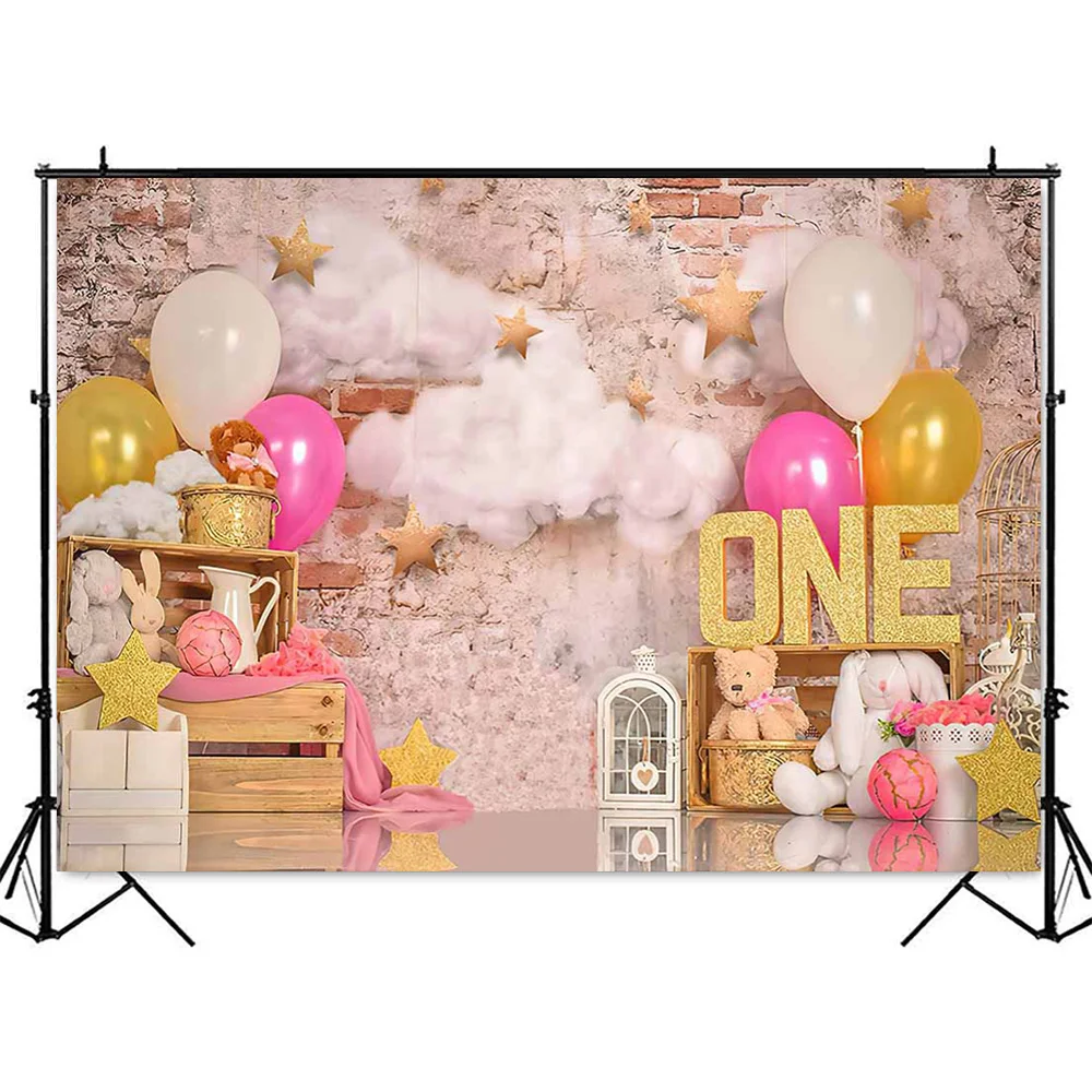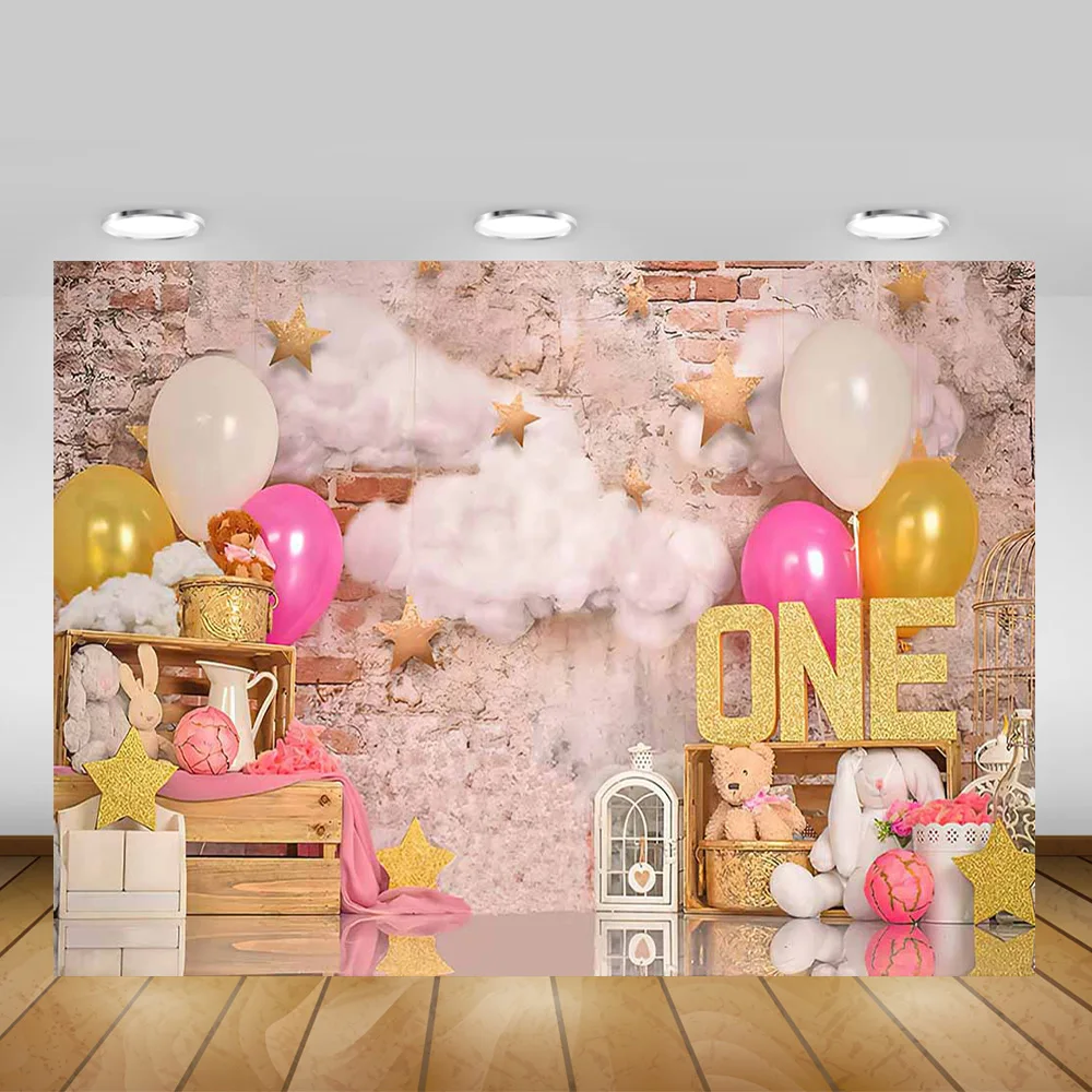 Для девочек со сплошным принтом торт ко дню рождения Smash фон для фотосъемки с изображением кирпичной стены для новорожденных 1st портретной фотосъёмки детей кролика игрушки Воздушные шары с золотыми звездами