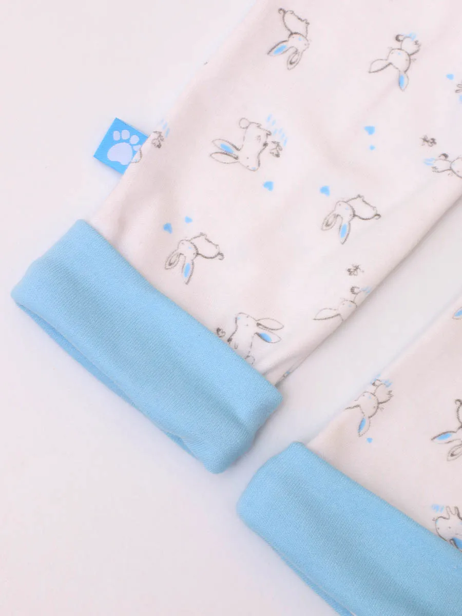 Штанишки для новорожденных (0 - 12м.) на широкой резинке из коллекции "Нежный зайка". Отлично подойдут для ежедневных активных игр, самого сладкого сна или в качестве приятного подарка. Модель изготовлена из мягкого 100% хлопка (интерлок). Главные фишки - клёвый принт и продуманный крой. Широкая резинка не даст штанам сползти и подарит ощущение легкости.
