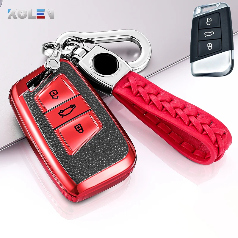 Кожаный ТПУ чехол для автомобильного смарт-ключа для Volkswagen VW Passat B8 Golf Magotan Skoda Superb A7 Kodiaq защитный чехол-держатель