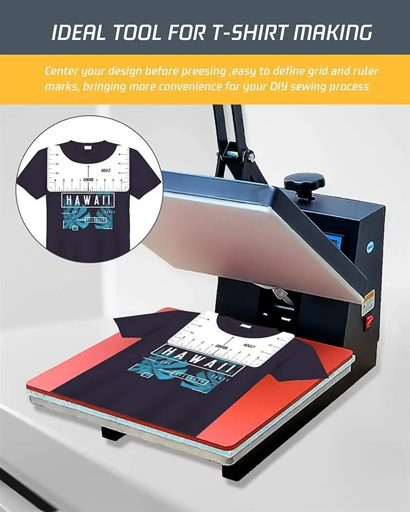 3.【 простой в использовании 】 инструмент для дизайна футболки-это огромная помощь при выравнивании вашего дизайна к Вашей футболке, прост в использовании, просто выровняйте линейку к воротнику и закрепите свой дизайн перед нажатием кнопки.