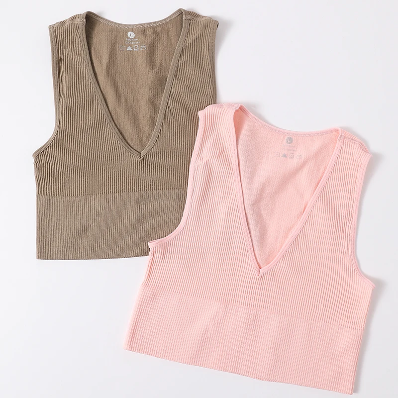 Топ женский, бесшовный, с глубоким V-образным вырезом, топ на бретельках