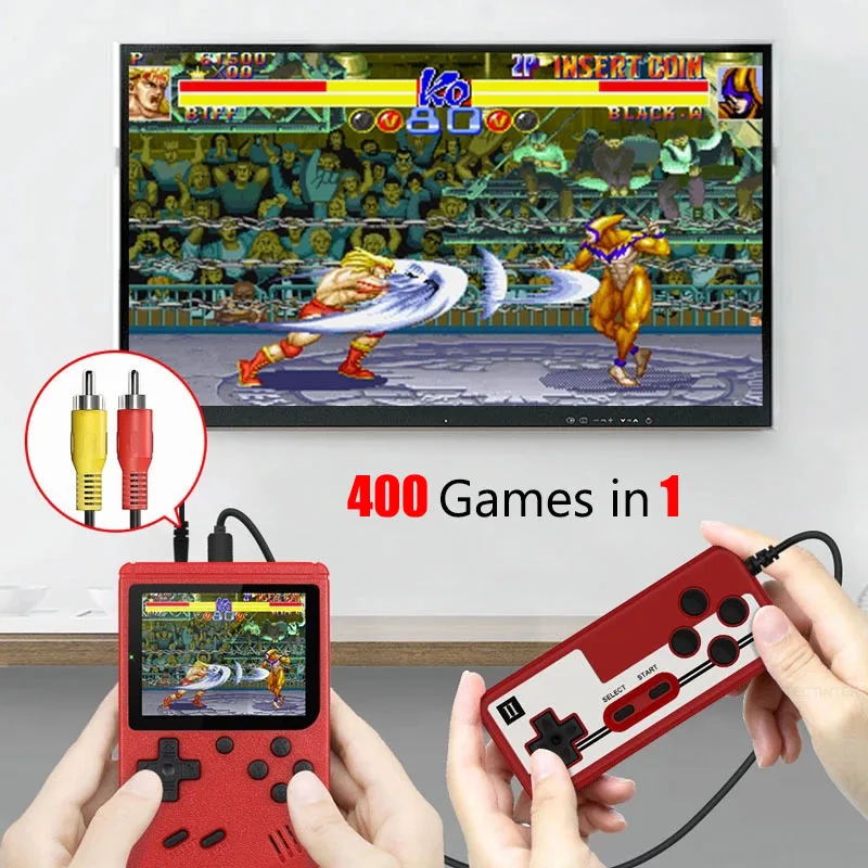 В эту игровую приставку встроено 400 различных классических игр. Включает в себя спортивные, Приключенческие и головоломки, а также мышление и обучение игры с памятью, математикой и логикой. В нем всегда будет что-то новое, чтобы развлечь, пока вы любите дома или в дороге.