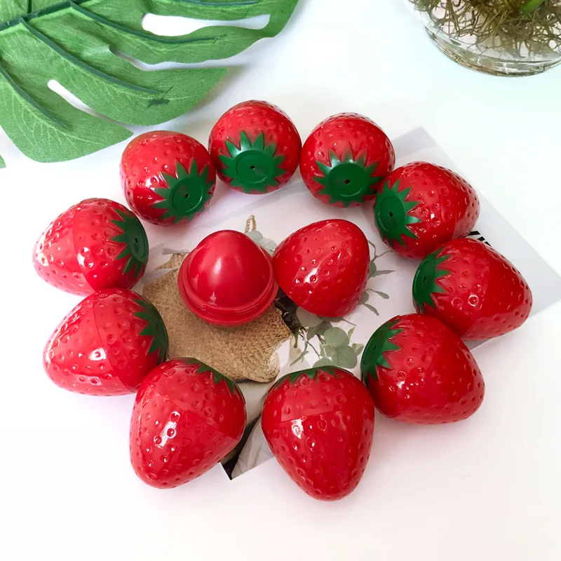 Оптовая продажа 24 шт.лот с милым клубничным принтом персик Лимонный бальзам для губ Макияж Увлажняющий Питательный Уход за губами Magic губная помада бальзам для губ