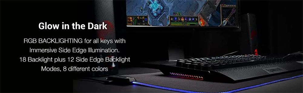 Подсветка RGB для всех клавиш с захватывающим боковым краем освещения. Двухкамерные литые колпачки для ключей обеспечивают кристально чистое равномерное освещение и надпись, которая не царапается. 18 режимов подсветки плюс 12 режимов подсветки бокового края, 8 различных цветов, 5 уровней яркости подсветки, скорость дыхания и Пользовательская Подсветка