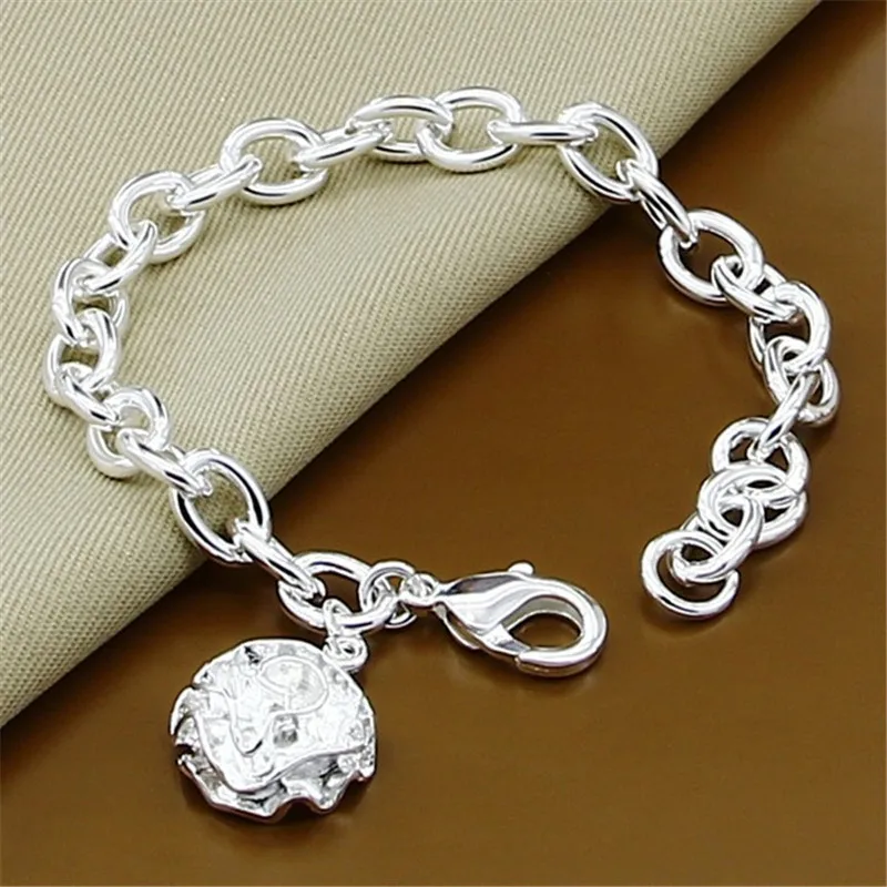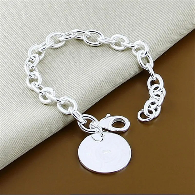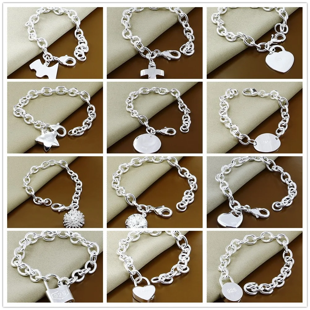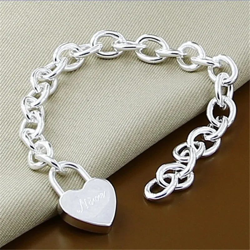 Новый 925 стерлингового серебра браслет сердце карты круглая карта замок кулон браслет Лобстер "сделай сам" с цепочкой, для женщин, Мужская украшен