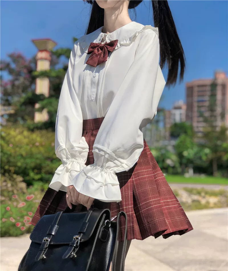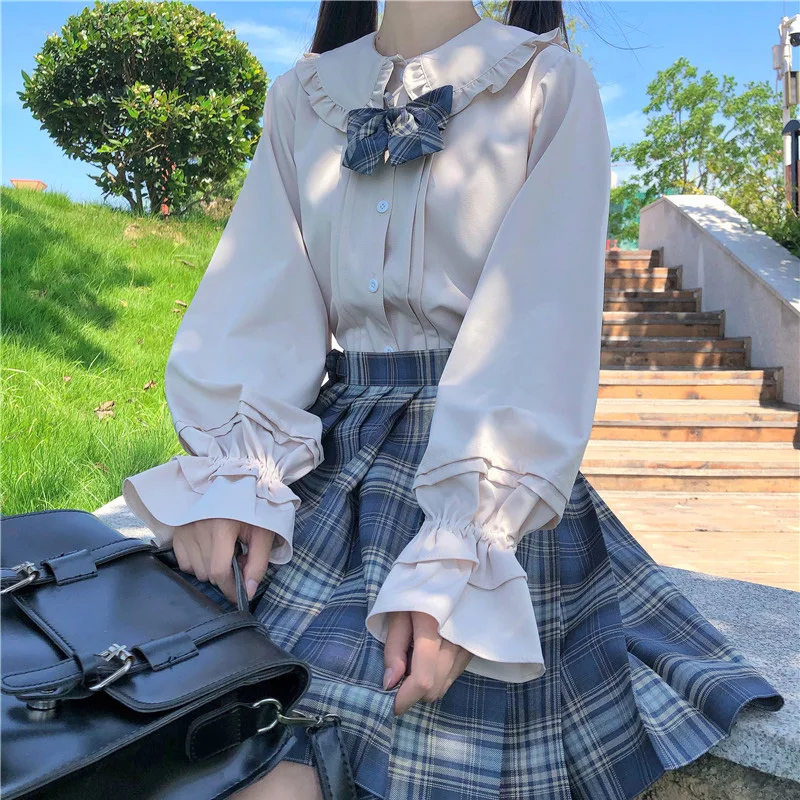 Японская рубашка с оборками для женщин, Новинка весна-осень 2022, воротник с куклой, длинный рукав, блузка Jk Kawaii Girl Lolita, внутренний женский топ