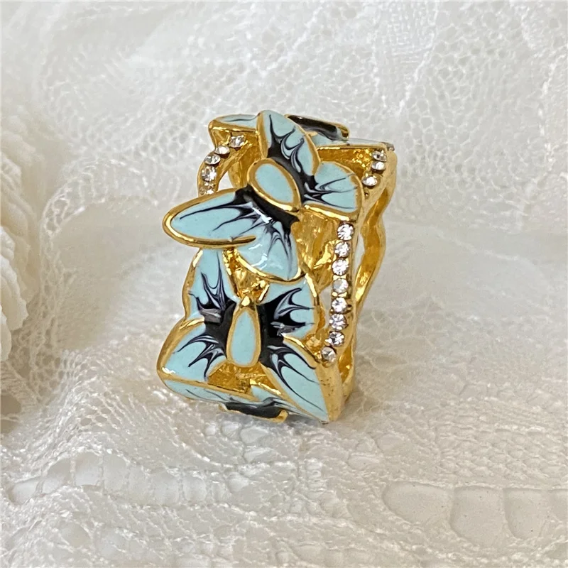Кольцо Milangirl с синей бабочкой и насекомым крылья, эмалированное...