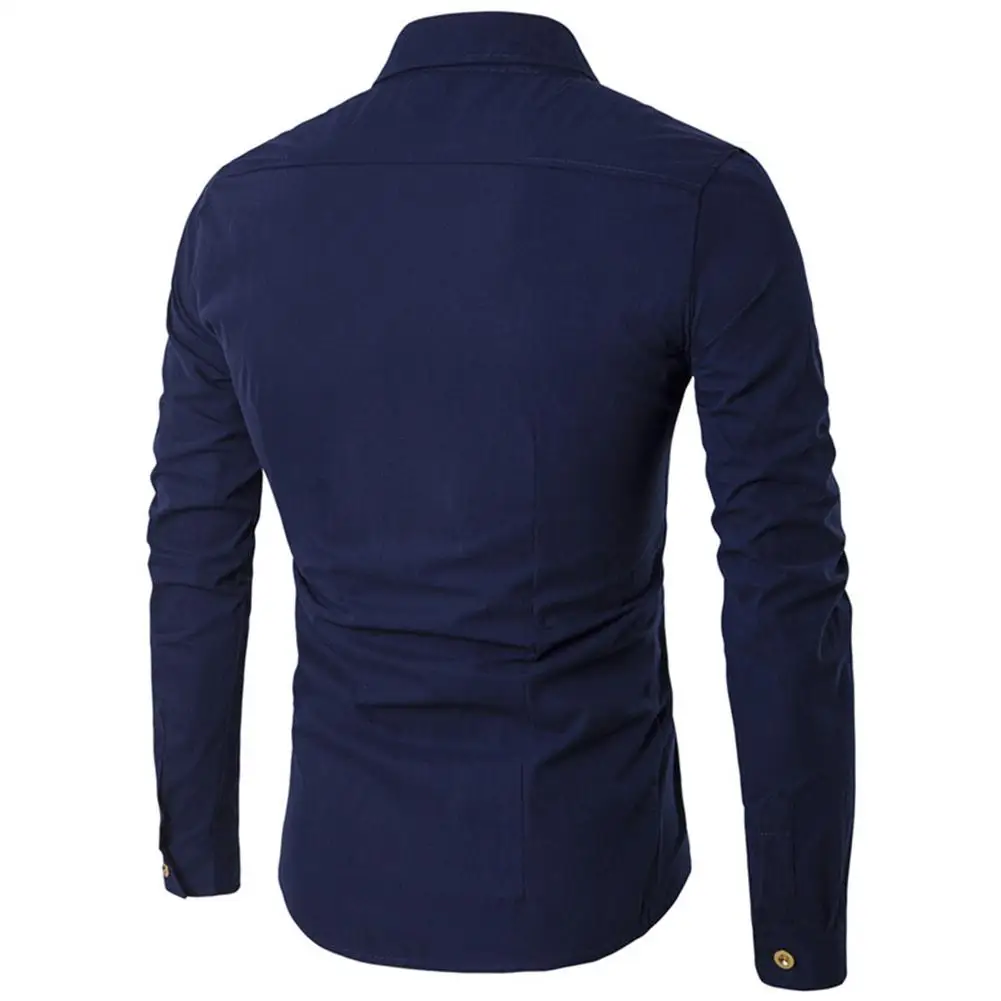 Рубашка мужская с длинным рукавом, диагональная двубортная хлопковая приталенная, на пуговицах, с отложным воротником, повседневная Асимметричная, весна-осень