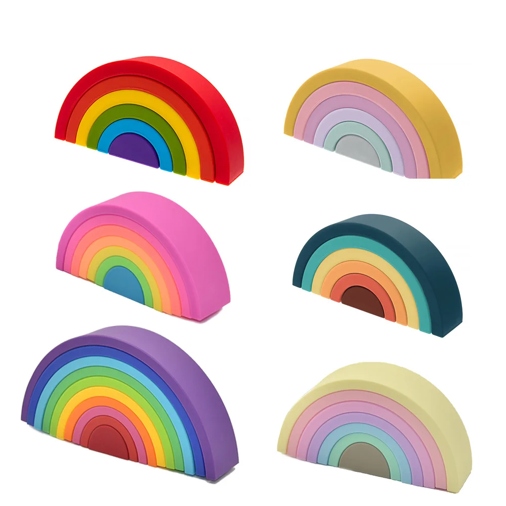 TYRY.HU 710 шт. детские мягкие радужные развивающие Силиконовые Прорезыватели для зубов 3D складные штабелируемые блоки игрушки, не содержащие БИСФЕНОЛ