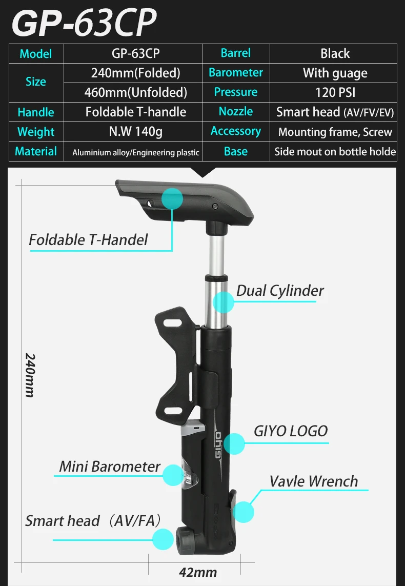 Велосипедные насосы Giyo ручной работы41S63CP Mini 120 Psi, насос для горного и дорожного велосипеда Smart Schrader Presta Valve, насос для шин AVFV