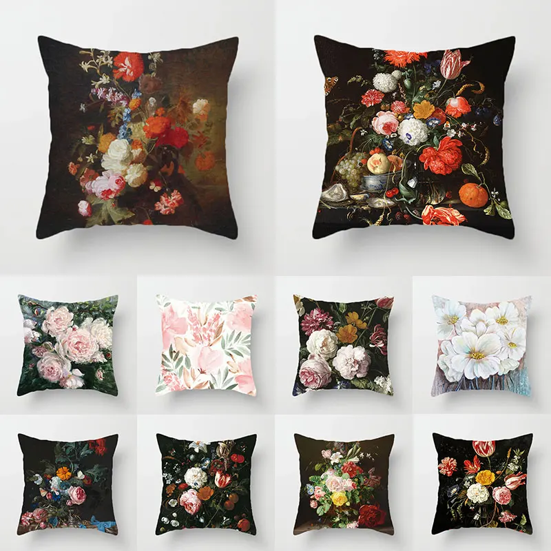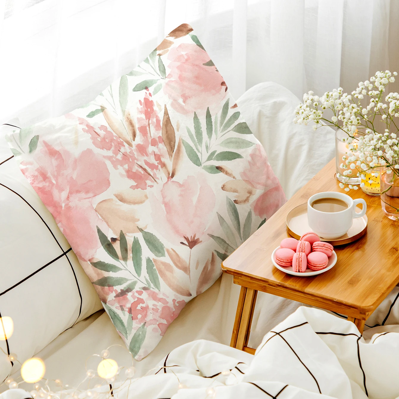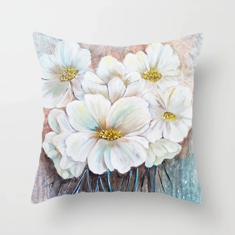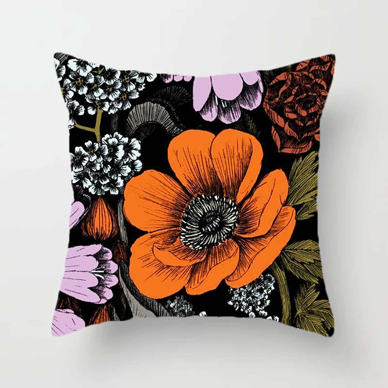 Наволочка с цветочным принтом, домашний декор, узор с листьями, квадратная плюшевая наволочка для дивана, сиденья, декоративный чехол Cojin