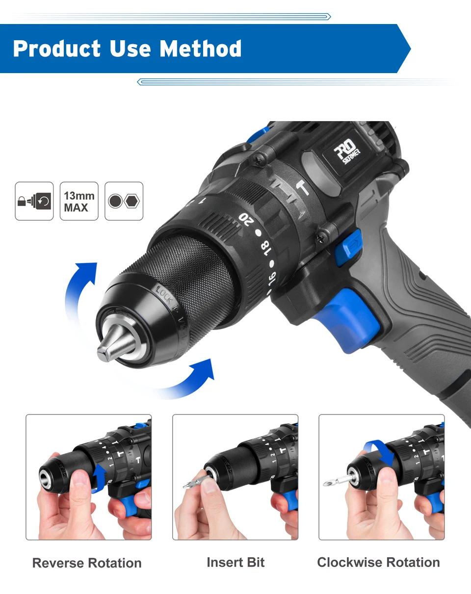 Ударная электрическая дрель-шуруповерт, 20 в, Беспроводная электрическая шуруповерт, бытовая DIY 2 Биты, только от PROSTORMER