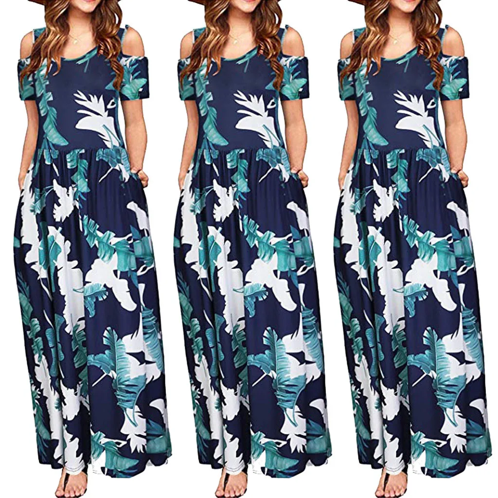 Женское летнее Элегантное Длинное Платье макси с открытыми плечами и цветочным принтом, платье с карманом