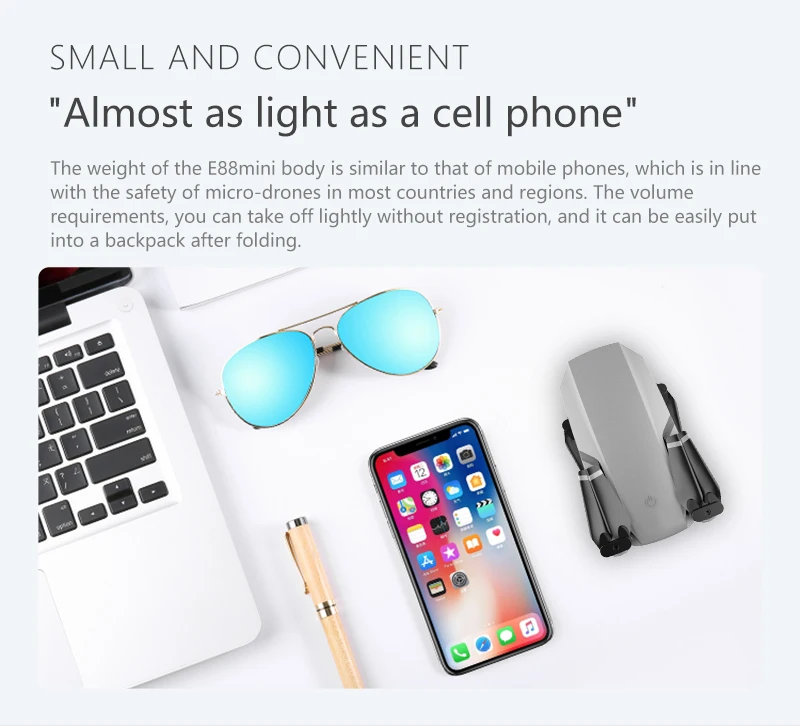 E88 WIFI оснащен широкоугольным HD 4K камерой с высоким режимом уде...