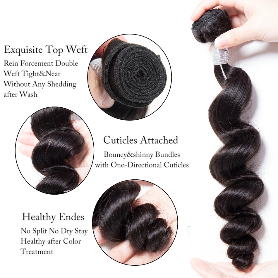 Бразильские человеческие волосы свободная волна пучки волос натуральный черный 1/3/4 шт./лот 100% человеческих волос пучки-волосы для наращивания без повреждения кутикулы