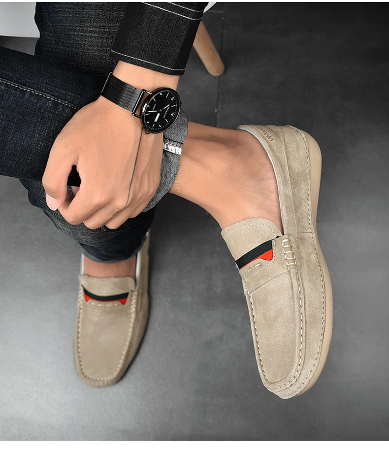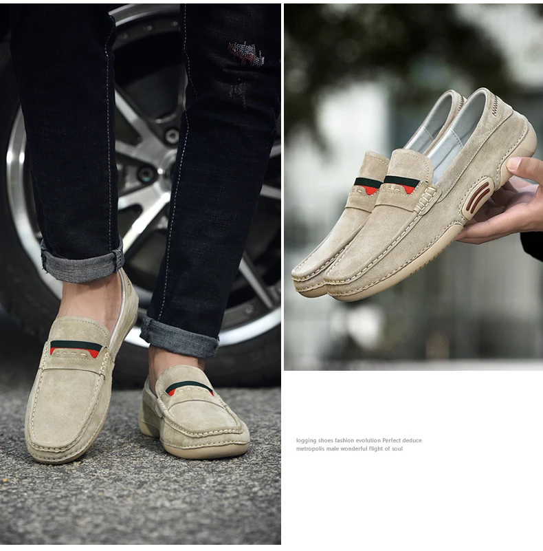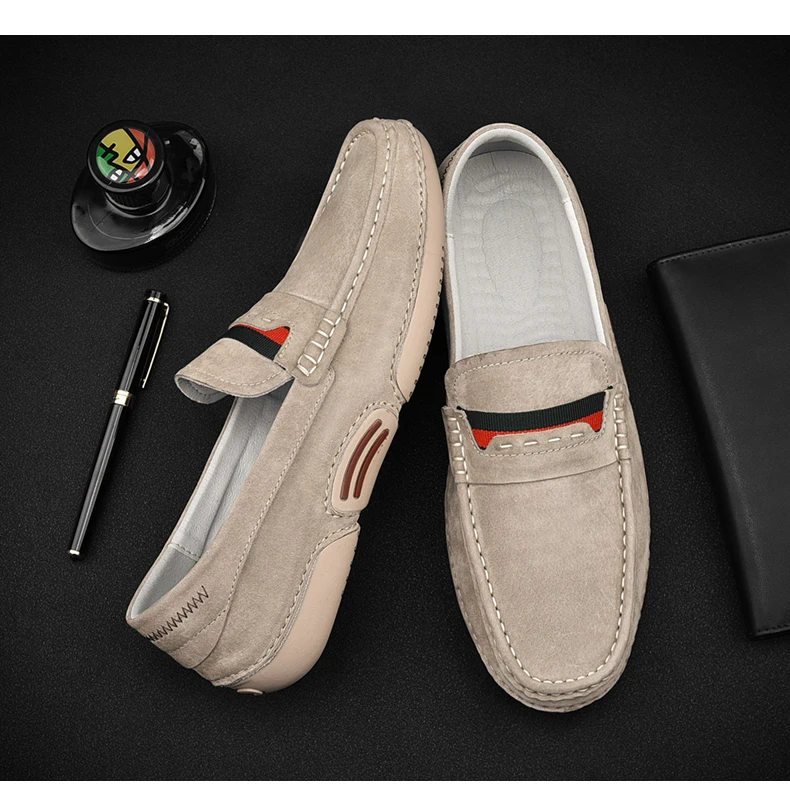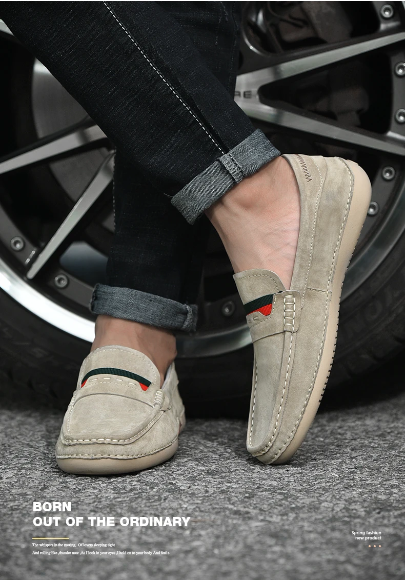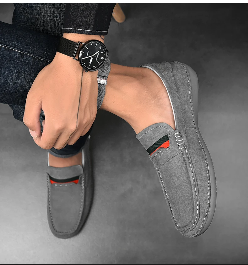 Мокасины мужские замшевые, модные кроссовки, лоферы, плоская подошва, без застежки, мягкие, для вождения