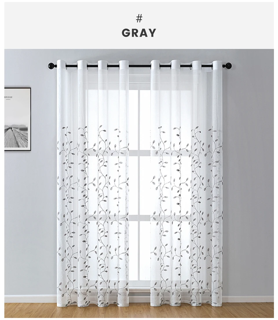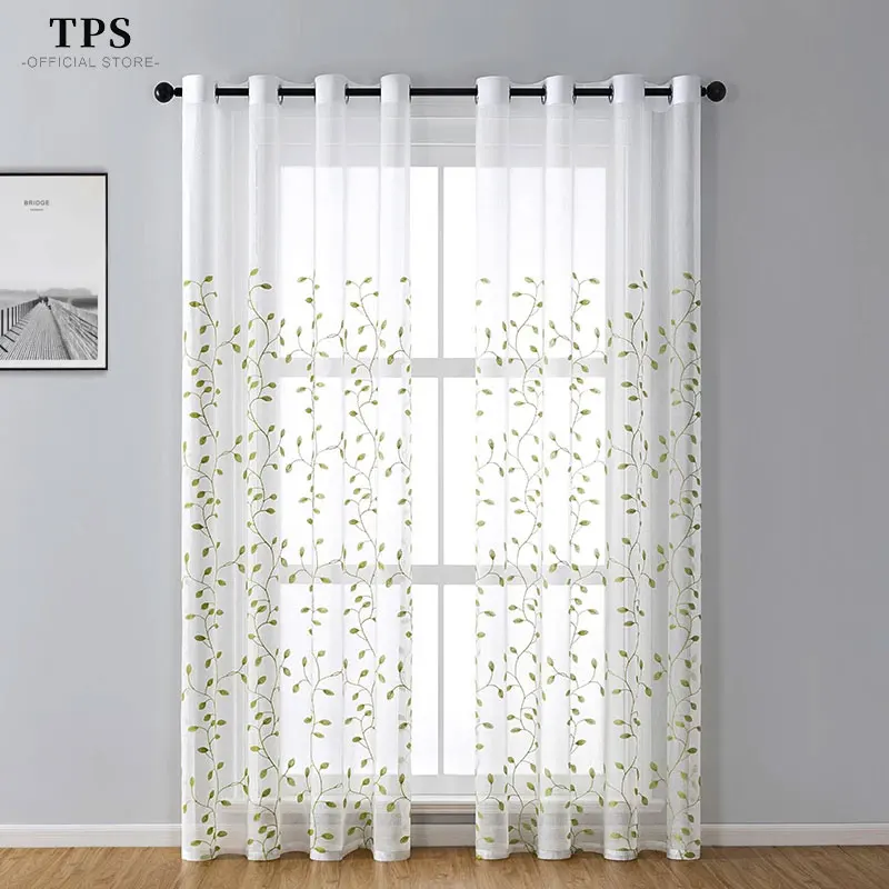 Шторы LISM с вышивкой листьев, прозрачные тюлевые занавески из вуал...