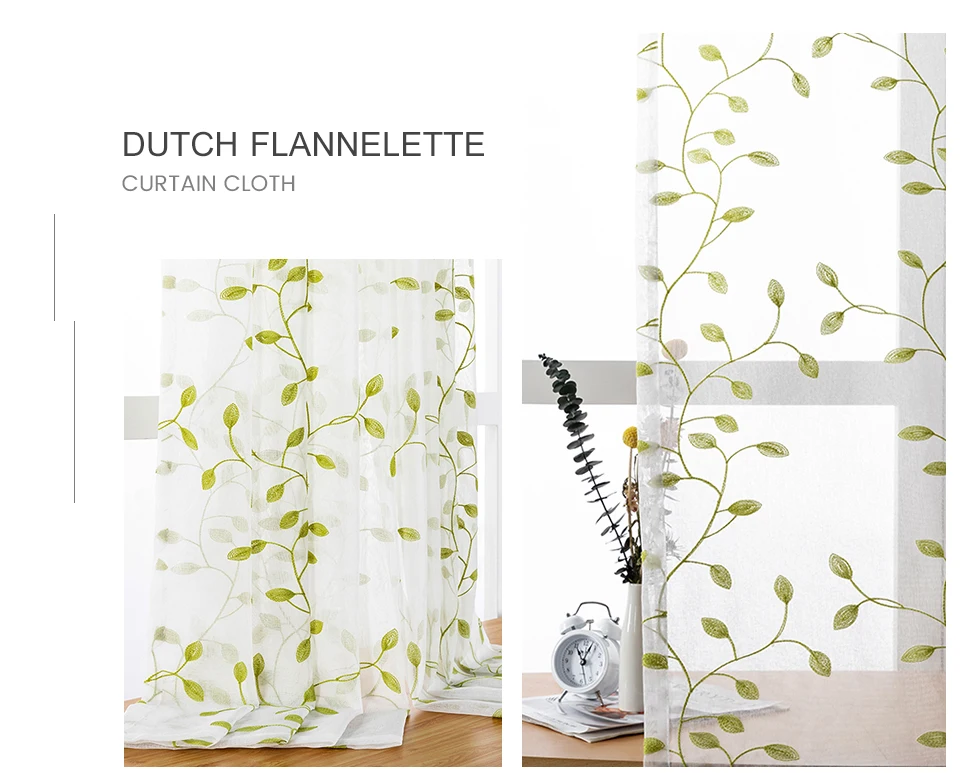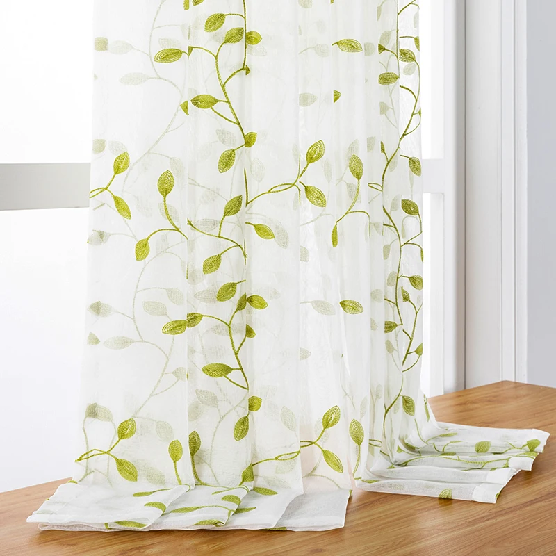 Занавеска из тюля для гостиной, спальни, кухни, с вышивкой листьев