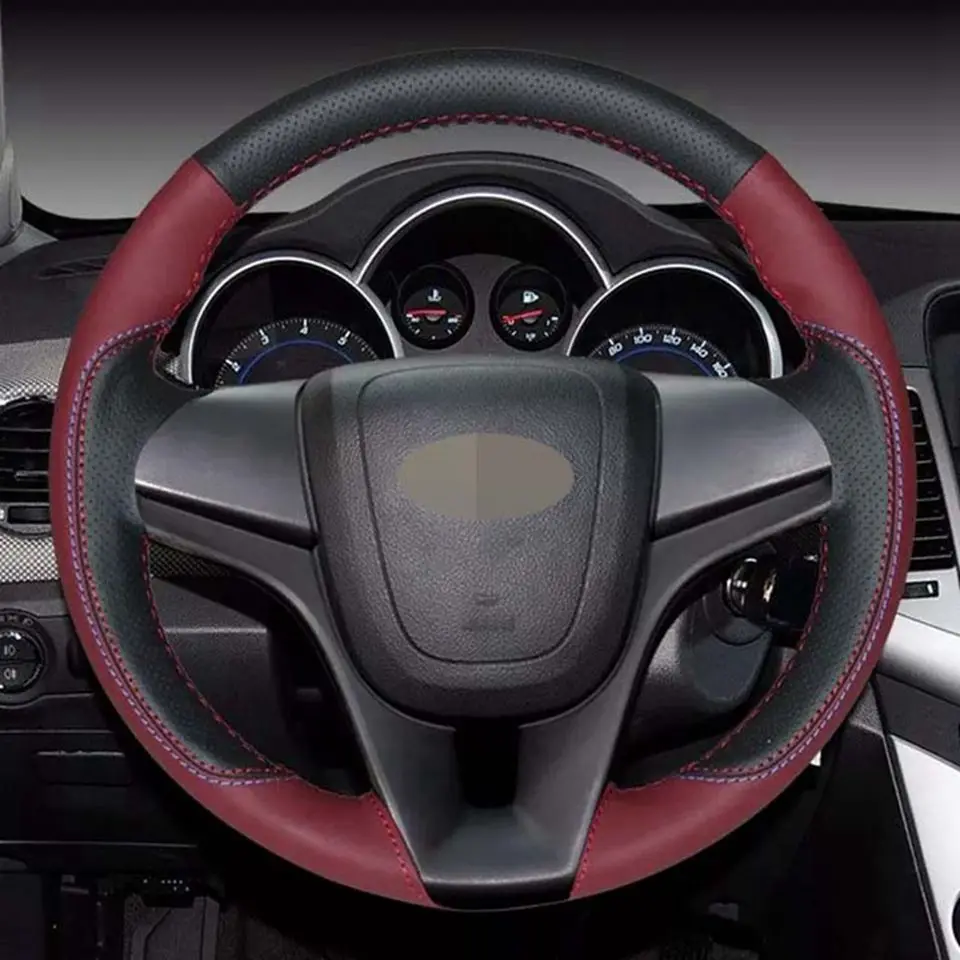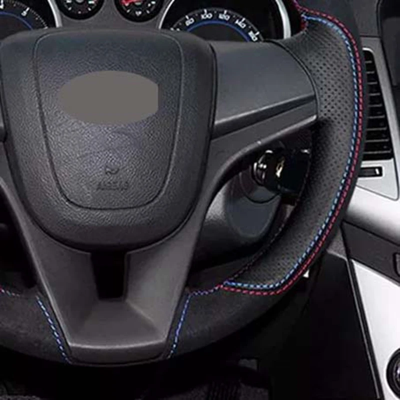 Рука сшитый черный натуральная кожа чехол рулевого колеса автомобиля для Шевроле Авео 2011-2014 Орландо 2010-2015 Cruze 2009-2014