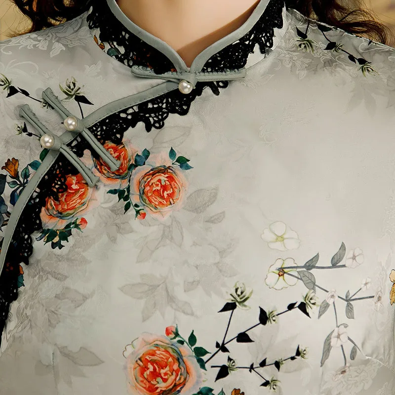 Китайский элегантный кружевной халат с воротником-стойкой и короткими рукавами
