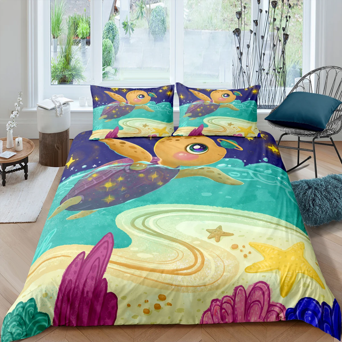 Морская черепаха рыбы постельное белье наволочки морские животные постельное белье королевы King Size домашний одеяло для взрослых и детей постельное белье