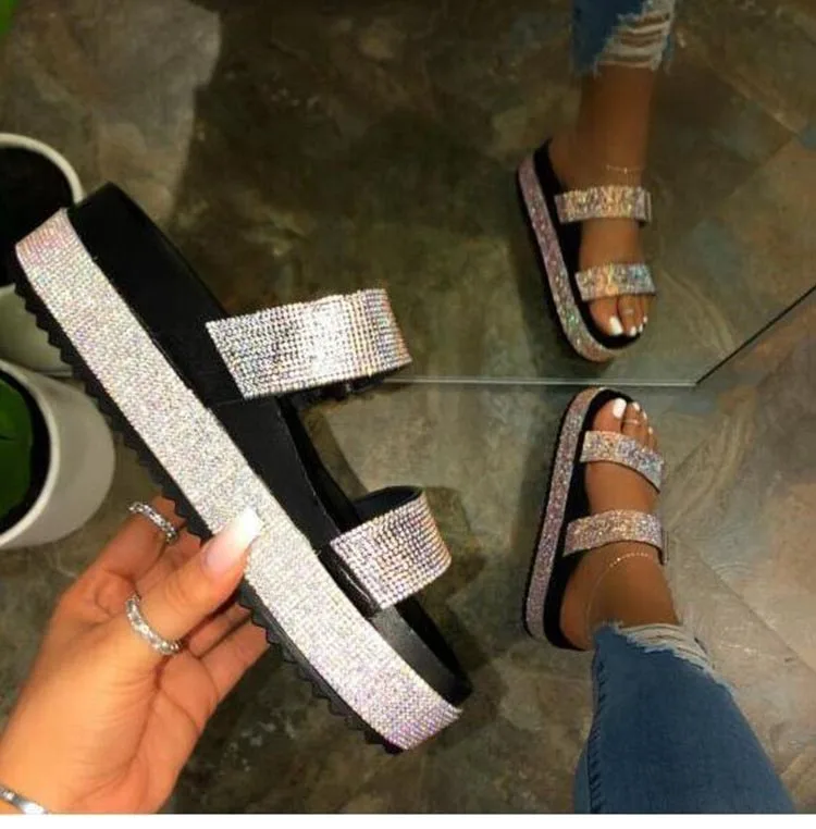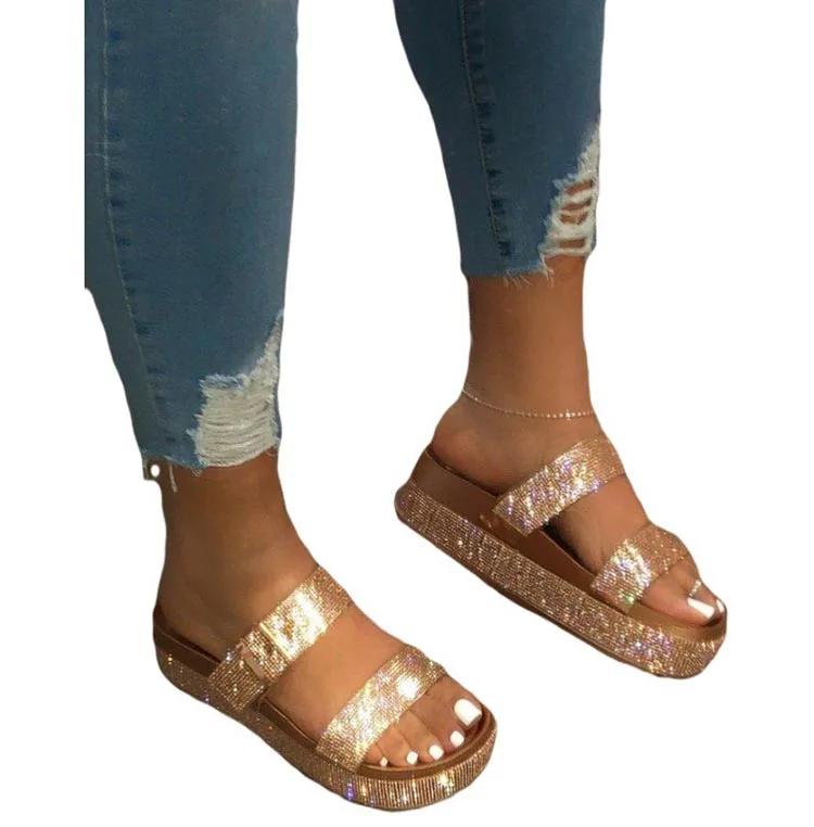 Сандалии женские с блестящими стразами, Модные Стильные пляжные туф...