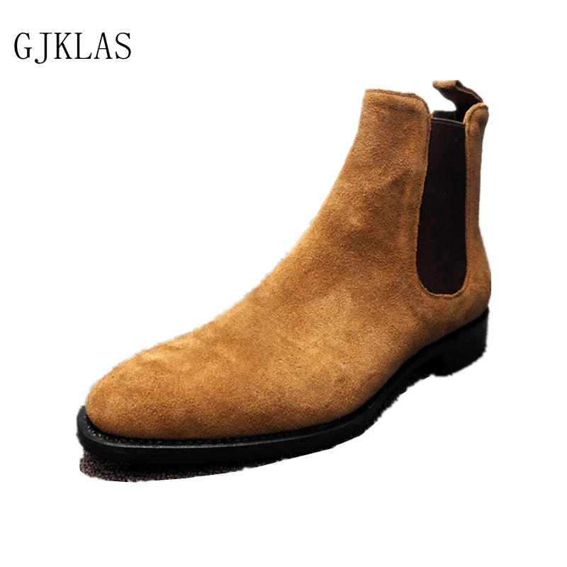 Мужские осенние ботинки челси ручной работы из искусственной замши ...