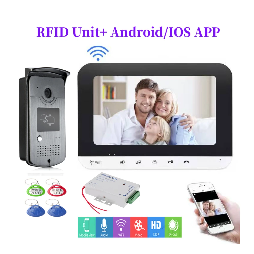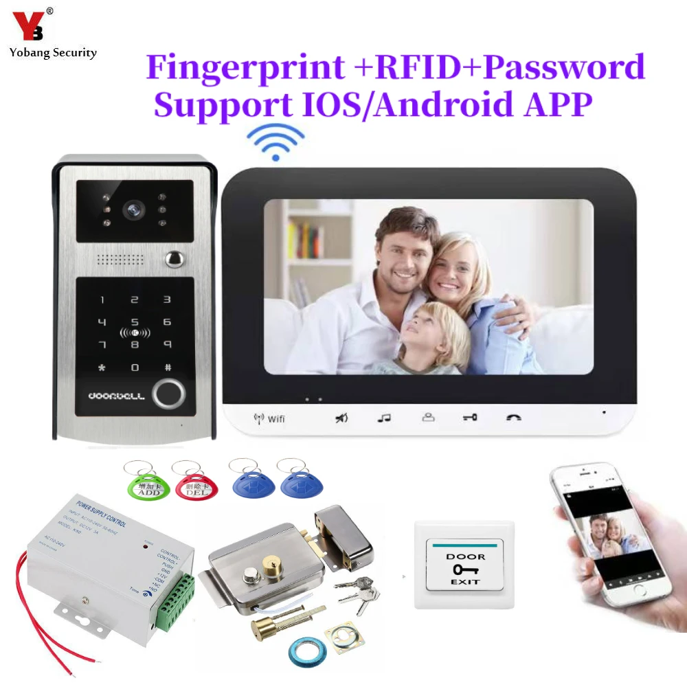 Беспроводной видеодомофон с замком 7 дюймов Водонепроницаемый дверной звонок Камера видео-телефон двери Система контроля допуска к двери разблокировка ночного