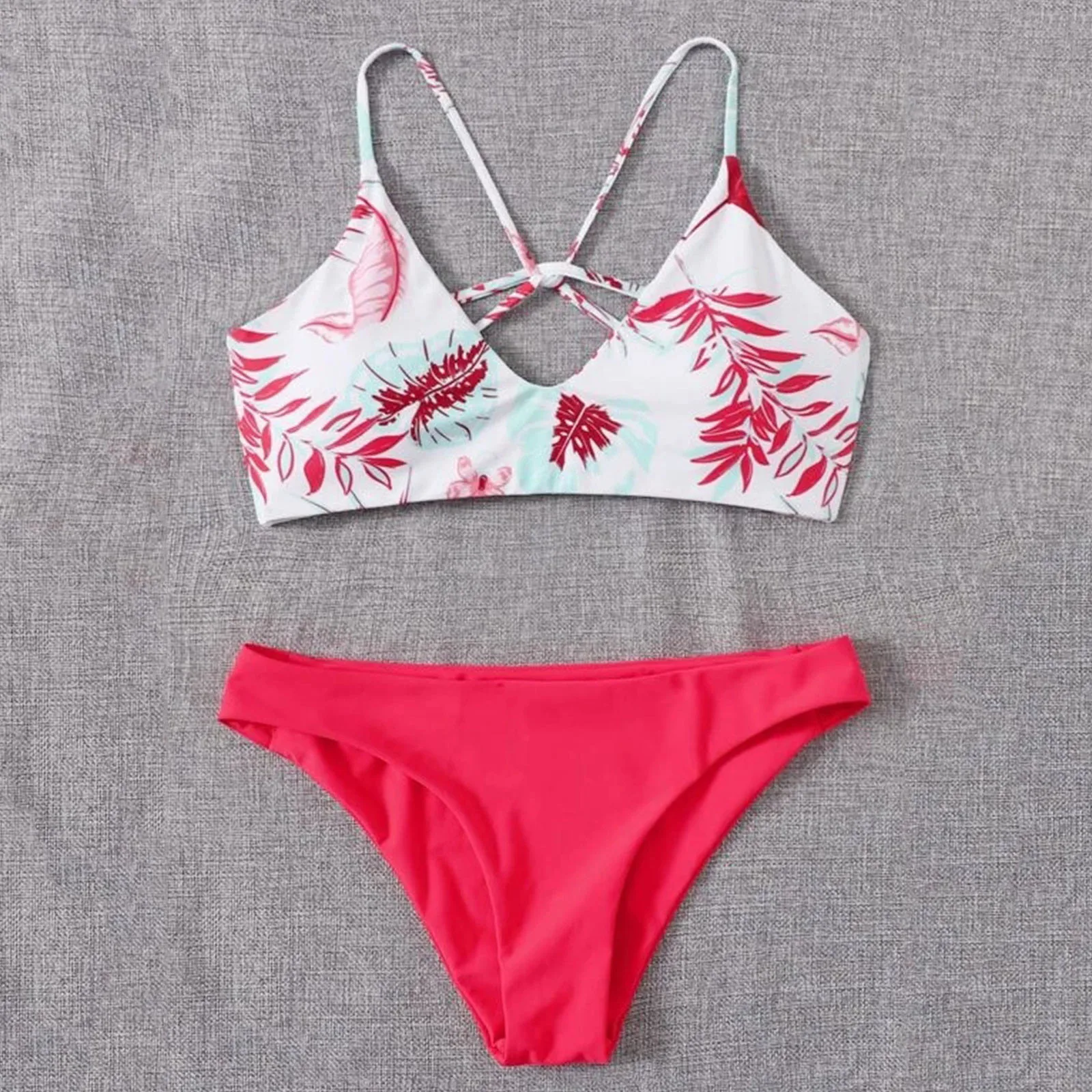 Женский купальник с цветочным принтом, повседневный бандажный бикини из двух предметов, Раздельный купальник с нагрудными подушечками, лето 2019