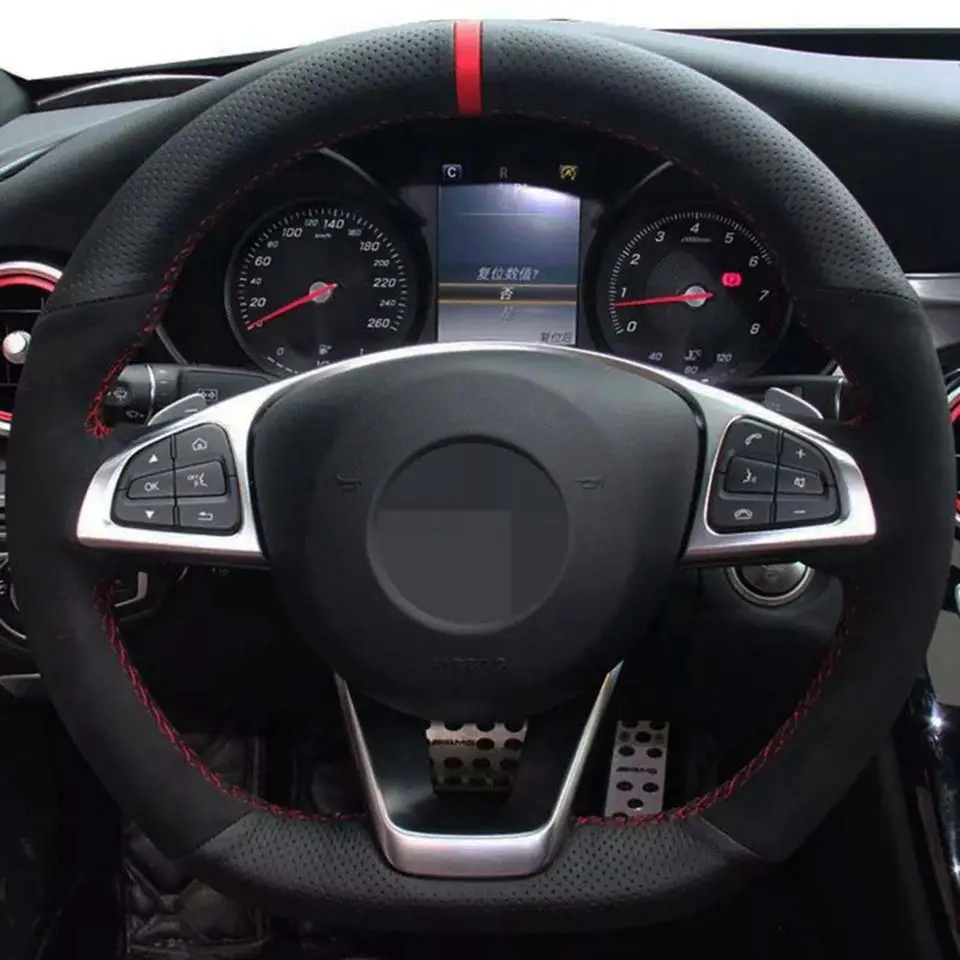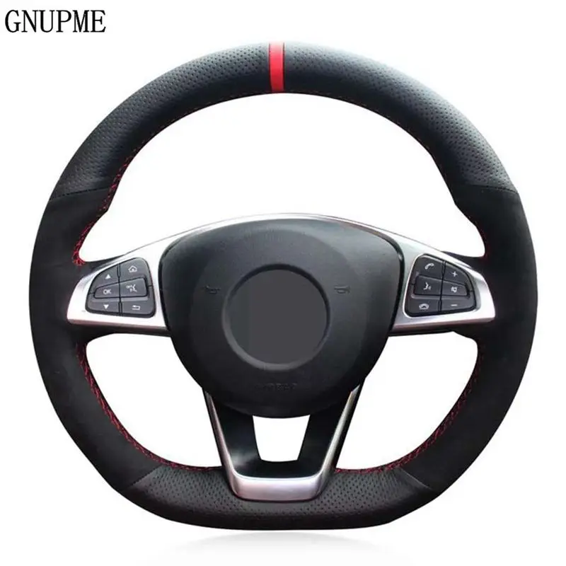 Черная замша кожаный чехол рулевого колеса автомобиля для Mercedes ...