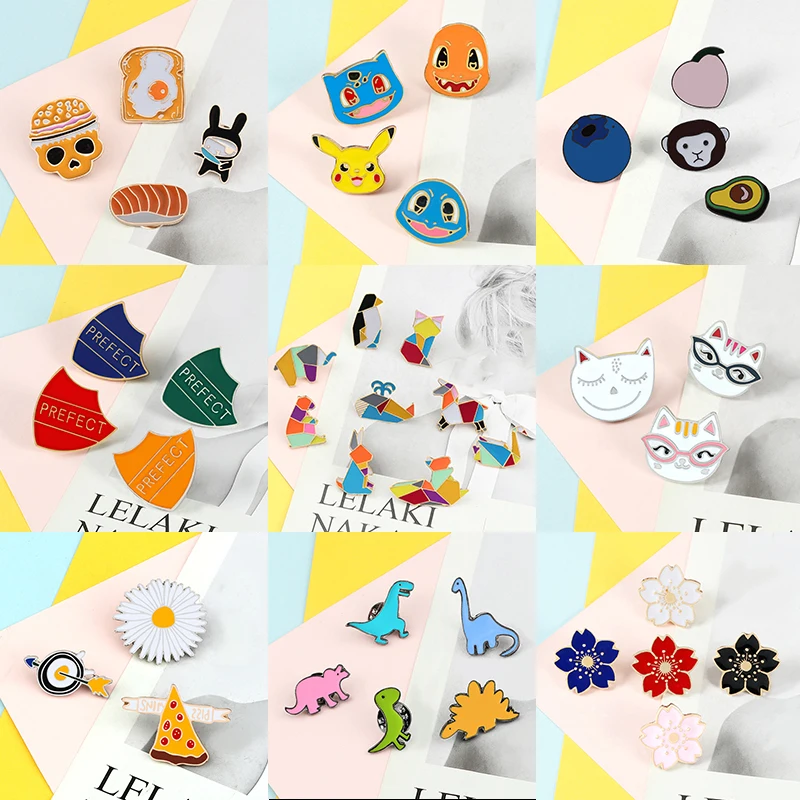 3 ~ 9 шт./компл. эмалированные булавки с изображением животных динозавра кота кролика цветок щит фруктовый мешочек для брошек одежда отворот значок Ювелирные изделия Подарки