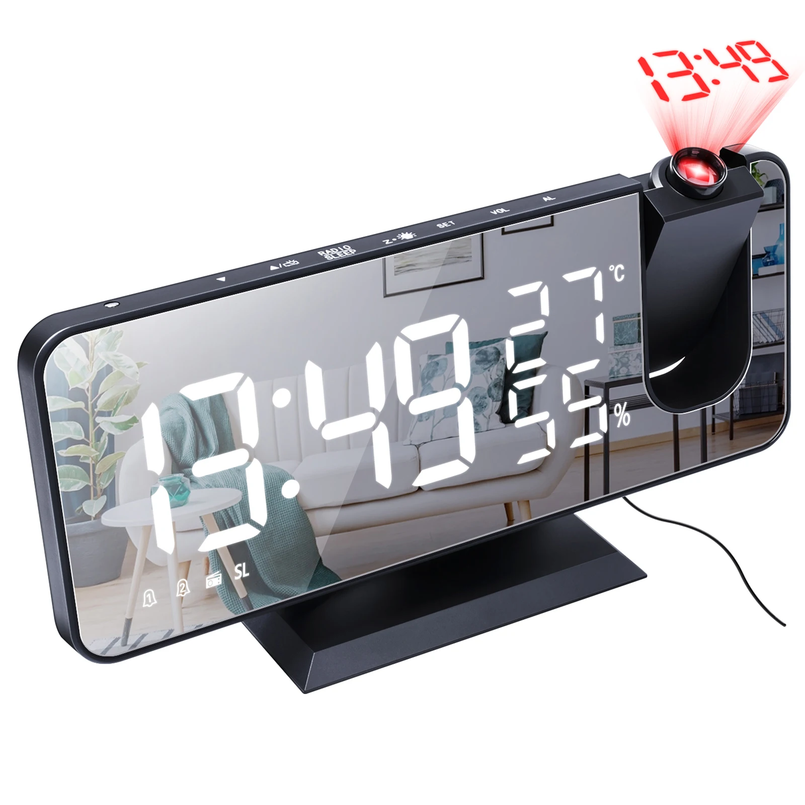 Светодиодный цифровой будильник, FM-радио с проектором, будильник с зеркальным экраном, радио FM76MHZ-108MHZ