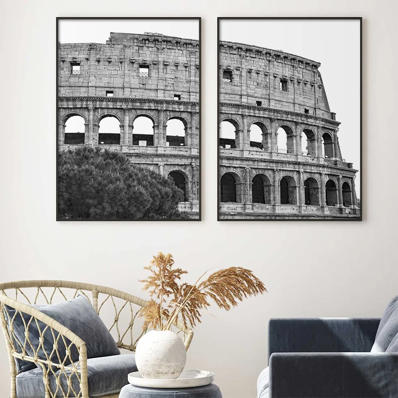 Настенная картина Древний памятник в римском стиле, постеры в итальянском стиле черно-белого цвета с изображением колистоума, классические картины, украшение для гостиной