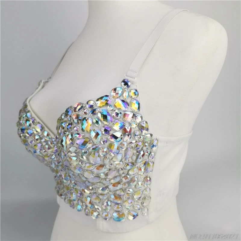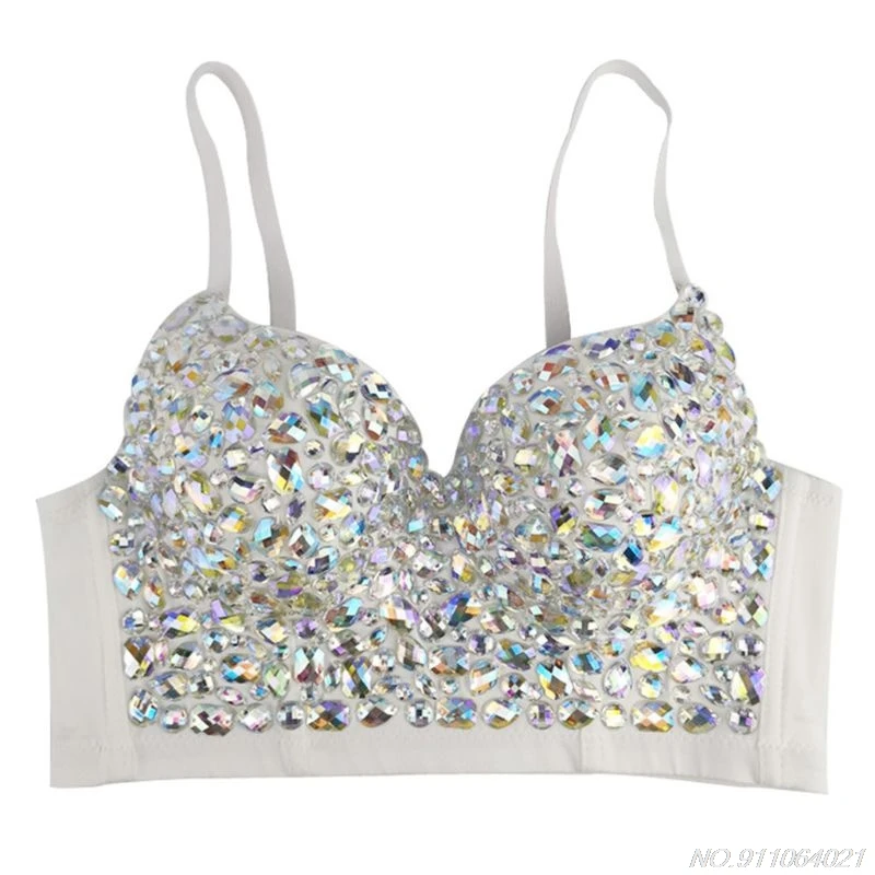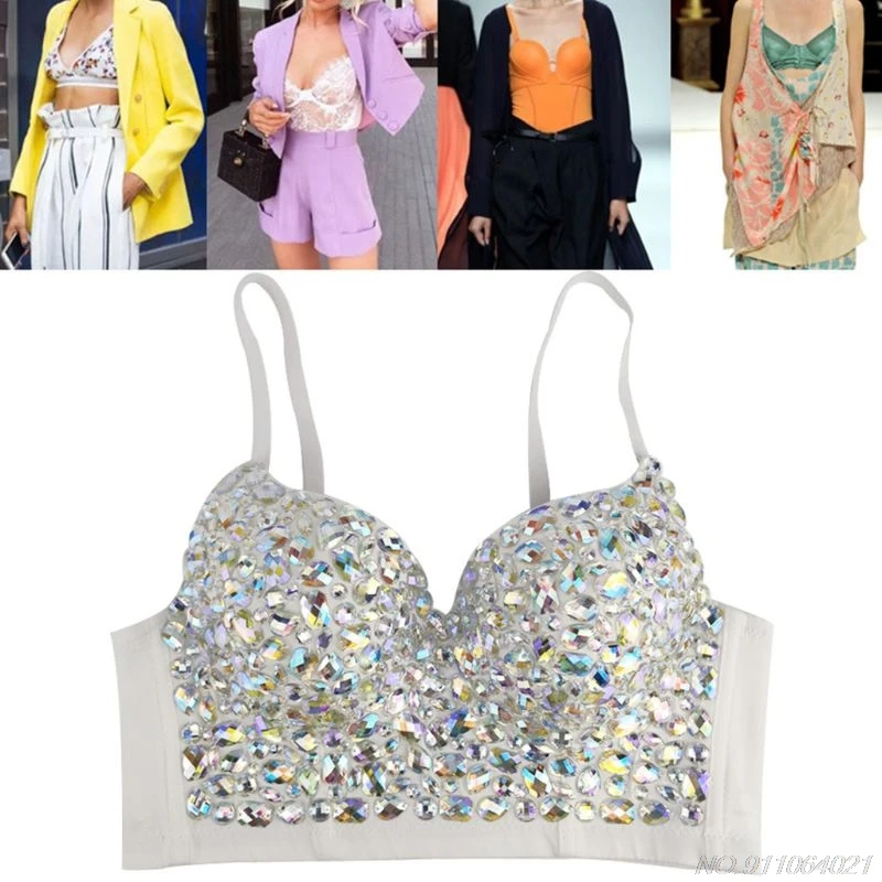 Женский сексуальный цветной бюстье стразы, короткий топ, бюстгальтер пуш-ап на тонких бретелях, блестящий клубвечерние вечерний корсет, бюстгальтер, жилет, оптовая продажа