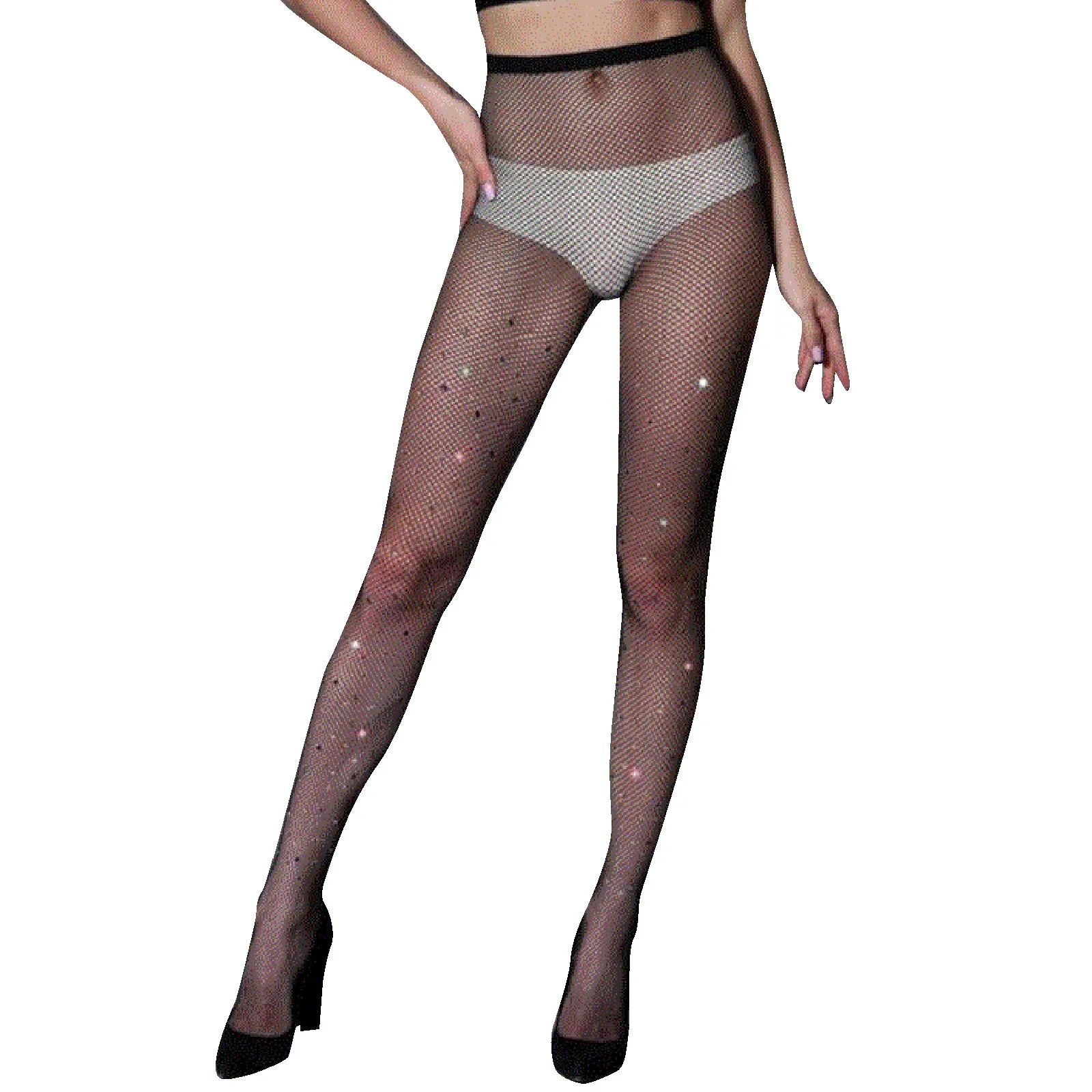 Женские сексуальные блестящие чулки с бриллиантами, ажурные сетчатые кружевные колготки
