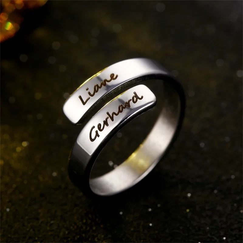 Кольца женские регулируемые из нержавеющей стали, с именем на заказ