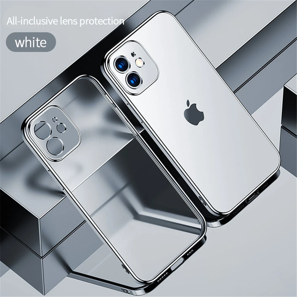 Роскошный квадратный Прозрачный чехол с покрытием для iPhone 11 12 ...
