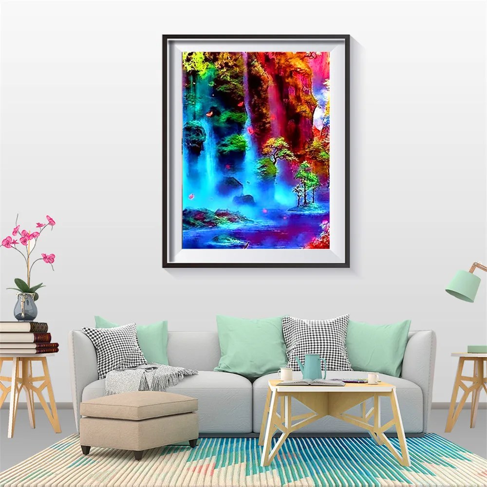 Алмазная 5d-картина HUACAN, мозаика с вышивкой пейзажа, с рисунком водопада стразы, украшение для дома