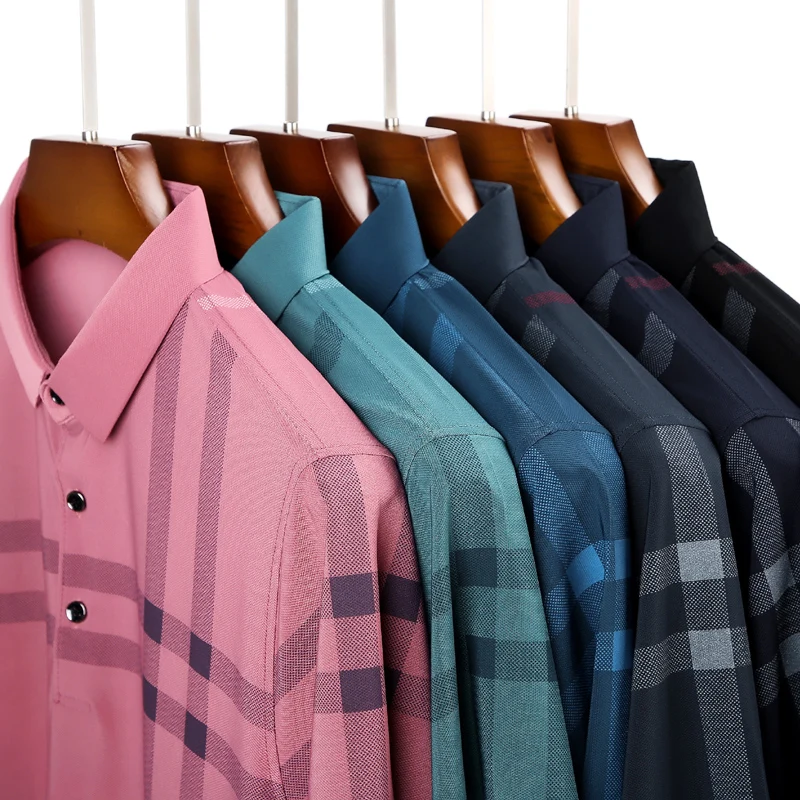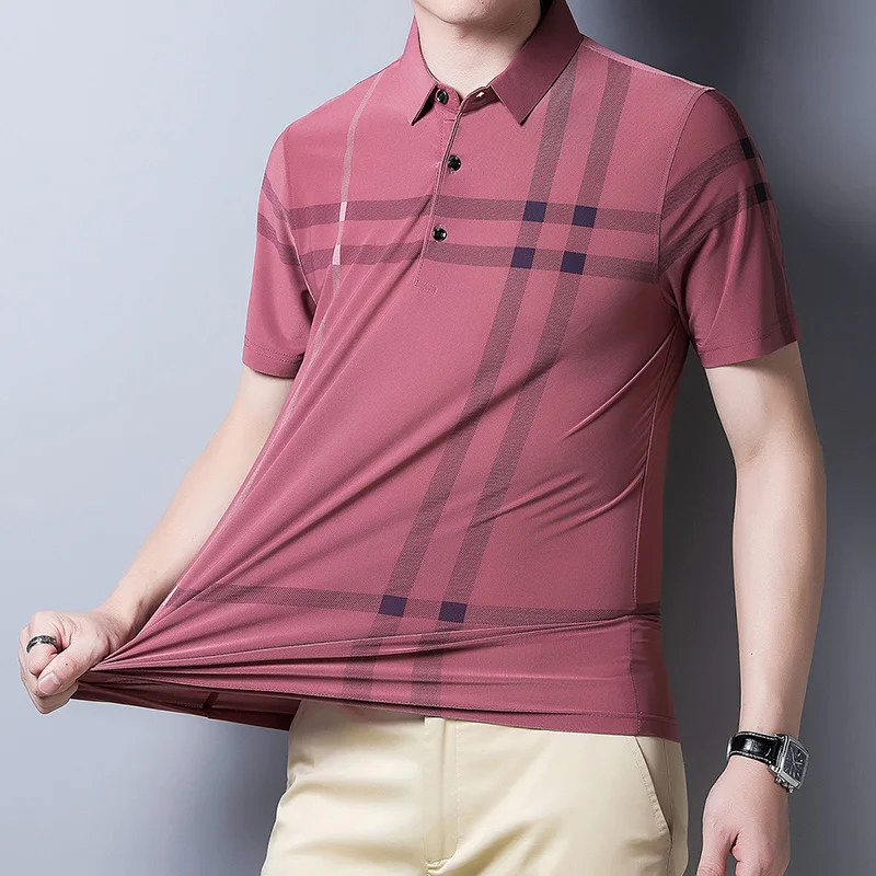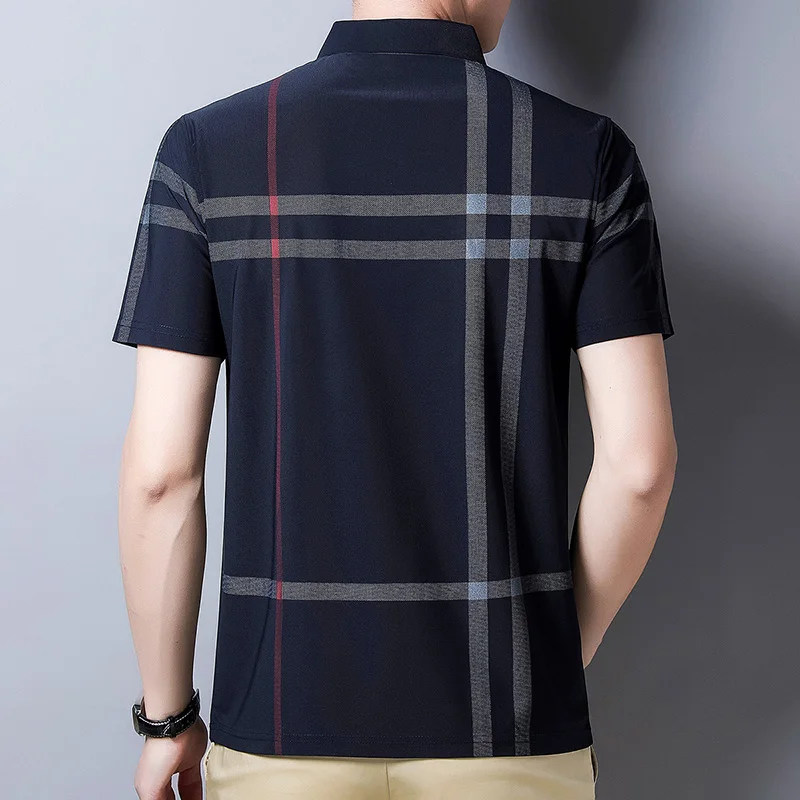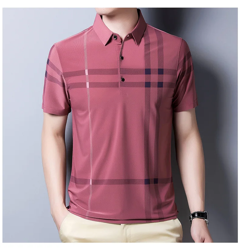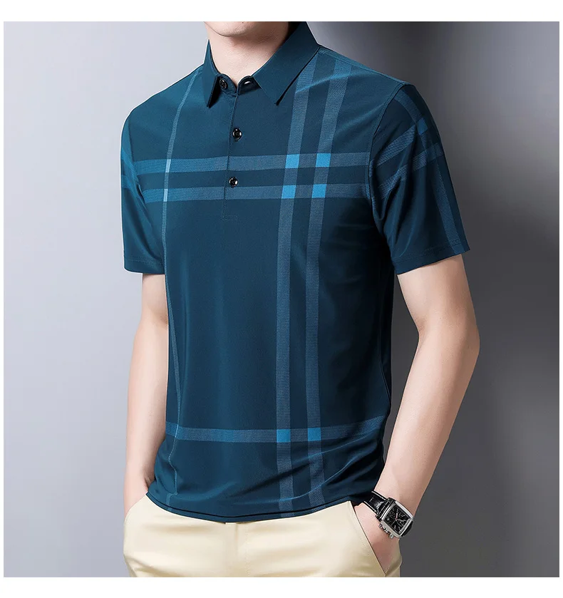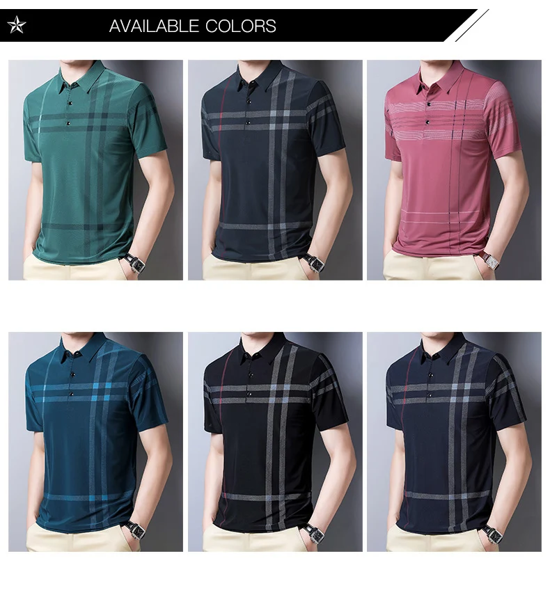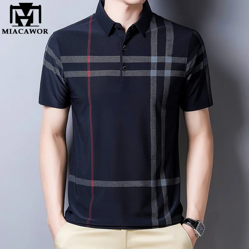 Футболка-поло MIACAWOR мужская с коротким рукавом, клетчатая рубашка, приталенный силуэт, повседневная, T989, на лето