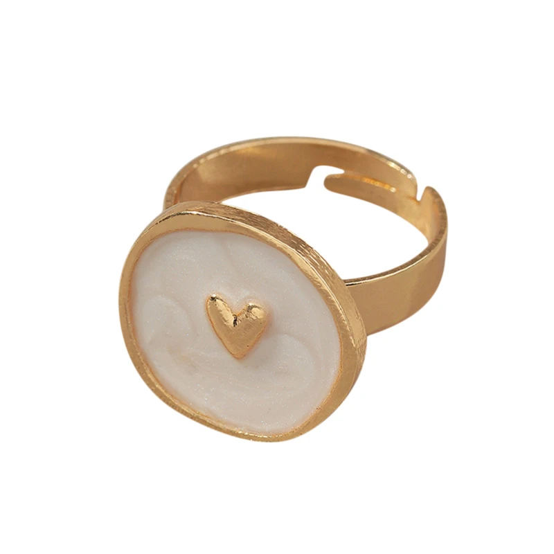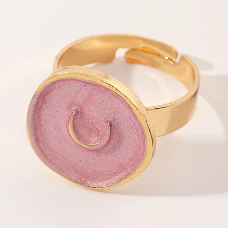 Женское кольцо с эмалью, регулируемое круглое, розовое, белое, голу...